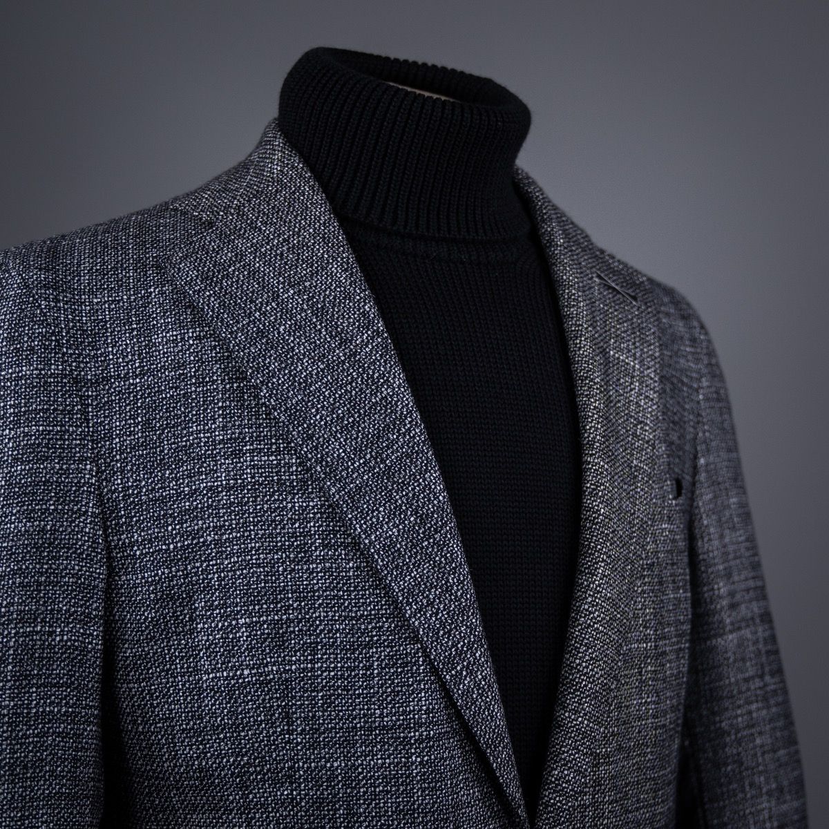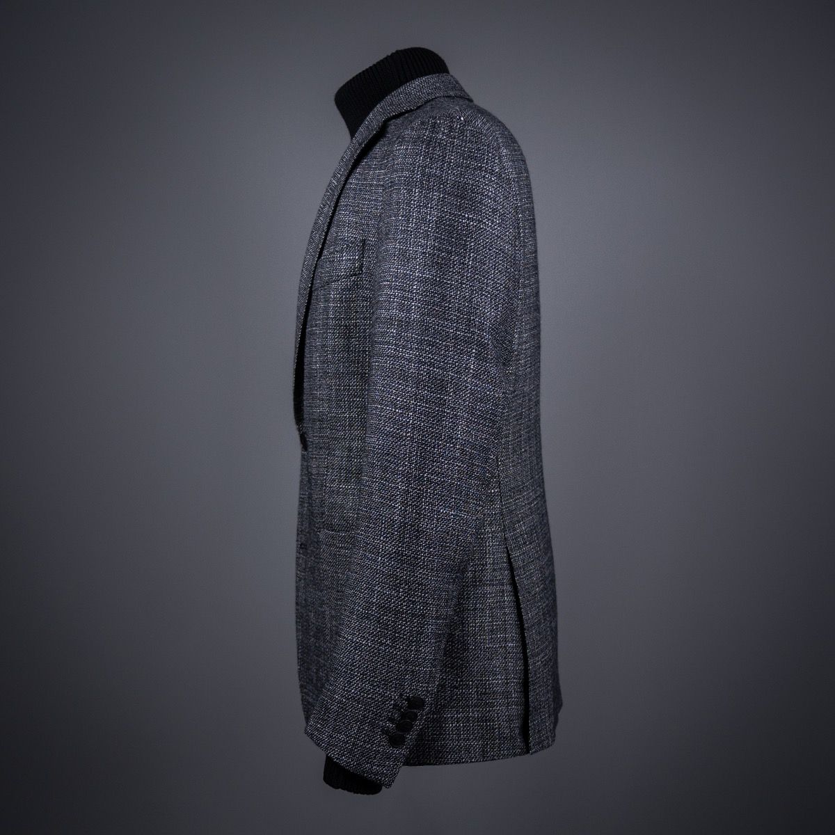 Dit jasje uit de AART collectie is gemaakt volgens de Napolitaanse school. Gesneden met een extreem dunne, zachte schouder en zonder kopwatte voor een ontspannen uitstraling. De structuurstof die gebruikt is, doet een beetje denken aan luxe meubels; typisch Italiaans. Wij zouden het combineren met een licht grijze denim en een zwarte coltrui, maar een chino en wit shirt past perfect voor een iets formelere look.