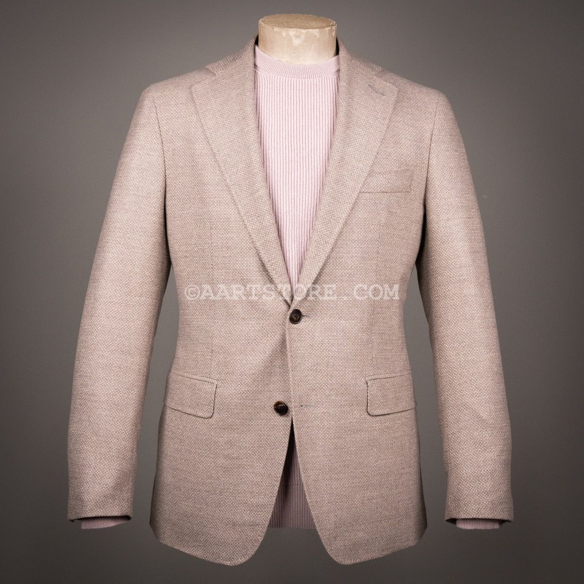 Dit jasje uit de AART collectie is gemaakt volgens de Napolitaanse school. Gesneden met een extreem dunne, zachte schouder en zonder kopwatte voor een ontspannen uitstraling. Tegelijkertijd heeft het jasje wel een full canvas constructie, het kenmerk van kleermakerskunst. Dit jasje is gesneden uit een stof van Loro Piana: Jersely. Een stof met een beetje structuur die op een natuurlijke wijze stretcht, uitermate comfortabel om te dragen. Een jasje dat heel makkelijk te combineren is en bij praktisch iedere broek past.
