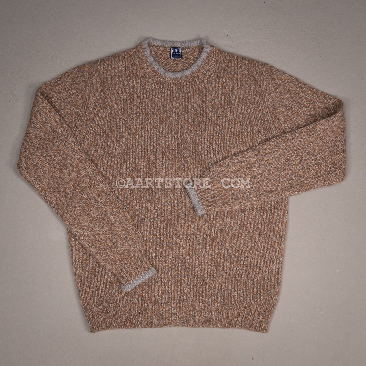 Fedeli staat bekend om hun sublieme breiwerk, het is een van de fijnste knitwear specialisten van Italië. Niet voor niet hebben zowel Zegna als Prada een belang genomen in dit bedrijf om zich te verzekeren van het vakmanschap van dit familiebedrijf. Deze trui is gemaakt van een mix van alpacca en scheerwol voor een lekker wollig en winters effect. Dit is een stoere trui die verassend veel luxer en zachter voelt dan je op basis van het uiterlijk zou verwachten. Door het gebruik van verschillend gekleurde draden is een gemarmerd effect ontstaan dat heel goed past bij denim en cord. Het subtiele randje langs de hals en bij de manchetten geeft de trui net dat tikje chique dat Fedeli onderscheidt van de rest.
