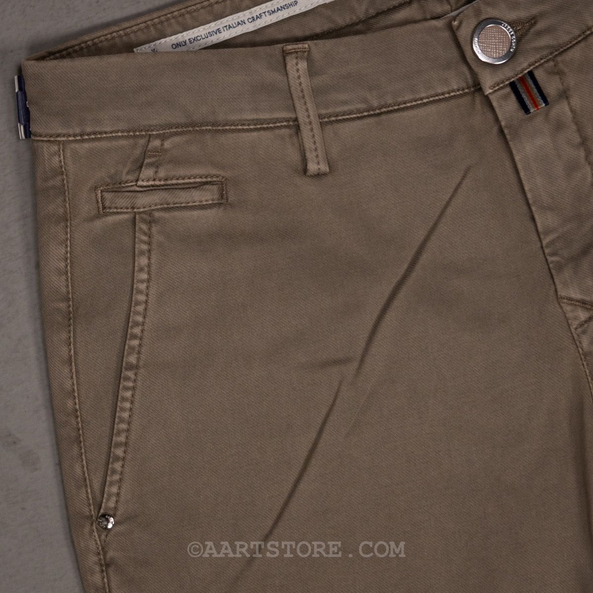 Naast fantastische jeans maakt Jacob Cohën ook een coole chino: de Bobby. De naam is een verwijzing naar Bobby Kennedy, een icoon van de casual cool. Het verschil zit in de details en de pasvorm; slank en toch comfortabel. De Fall Twill is een stof met een peached eff die deze chino is een stevige maar zachte uitstraling geeft. Dit doek heeft een prachtig kleurverloop waardoor de broek een licht marmereffect heeft. Deze Bobby is zeker elastisch maar ook vormvast en comfortabel. Een broek die zowel casual als iets meer gekleed past en dus ook prima bij een jasje gedragen kan worden, of bij winterse knitwear.