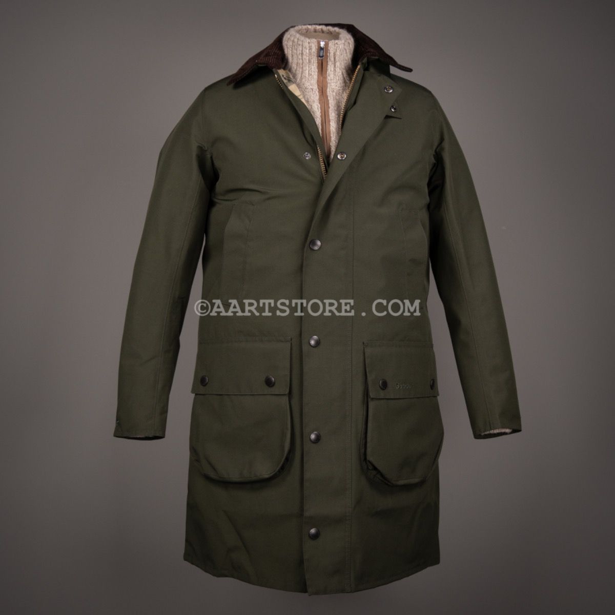 Barbour is een Brits icoon, geliefd bij burgers, buitenlui en het Britse koningshuis. Gesticht in 1894 in South Shields door John Barbour, staat vandaag de dag de 5e generatie aan het roer. Hoe een eenvoudig idee is uitgegroeid tot een wereldspeler. De combinatie van parafine wax en een 100% katoenen canvas maken van Barbour the best British clothing for the worst British weather. Vandaag de dag omvat de collectie ook modernere materialen, zoals deze Border Tech coat; een traditioneel model in een technisch materiaal. Dit showerproof doek zal je beschermen tegen de elementen terwijl het wel ademend draagcomfort biedt. De Border was oorspronkelijk bedoeld voor the master of the hounds, met een genereuze lengte en twee uitneembare binnenzakken om de slepen in te vervoeren. De Border Techno komt met een uitritsbare dons bodywarmer die ook los te dragen is. (NB. De genoemde maten zijn Europese maten, trek 10 af voor de UK maat, dus onze 48 is een UK 38 etc.)
