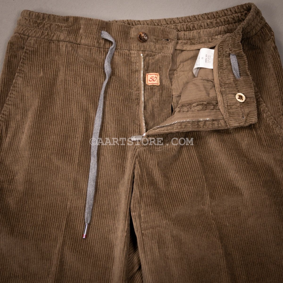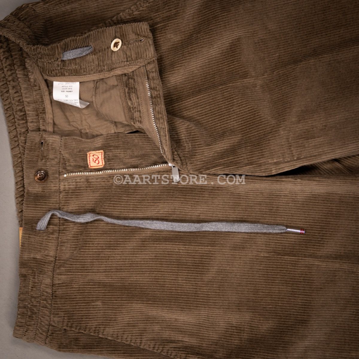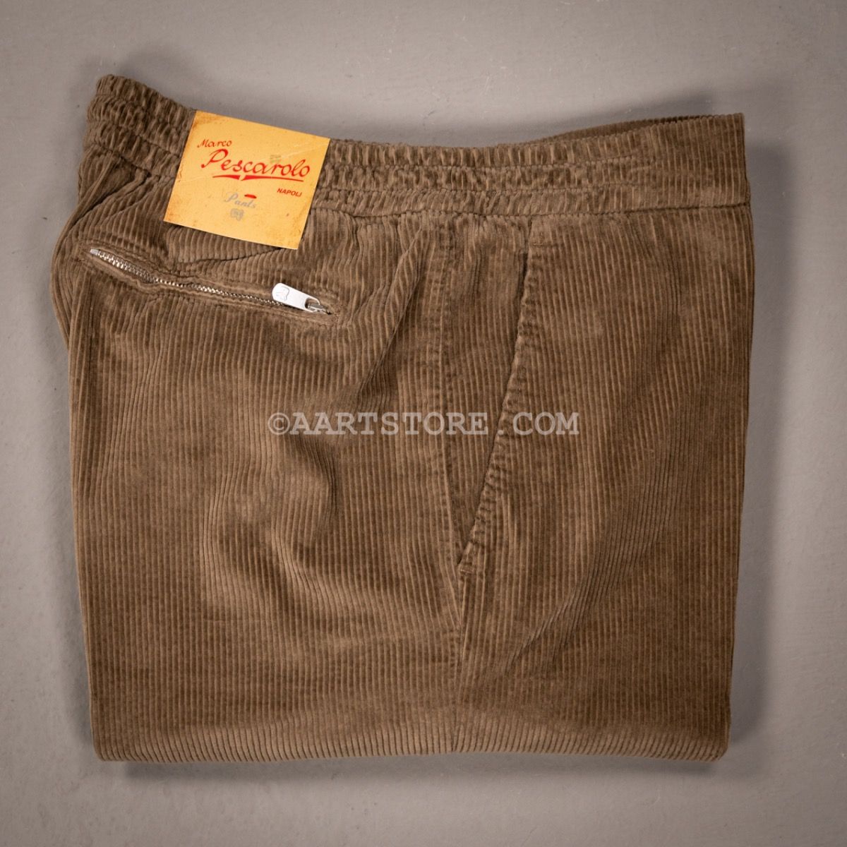 Pescarolo is een Napolitaanse broekenmaker die luxe combineert met een geheel eigen visie op hoe een broek moet zitten en vallen. Een prachtig bedrijf van twee (jonge) mannen die in staat zijn kunsten en stijlen van voorbije generaties te vertalen naar het nu. De Caracciolo is een kruising tussen een chino en ene relaxte drawstring. Een elegant silhouet in combinatie met verfijnde details en stoere corduroy. Het doek voelt en draagt uitermate zacht en heeft daardoor een elegante val om het been. Dit is een broek die perfect past bij een casual jasje maar natuurlijk ook goed combineert met knitwear.