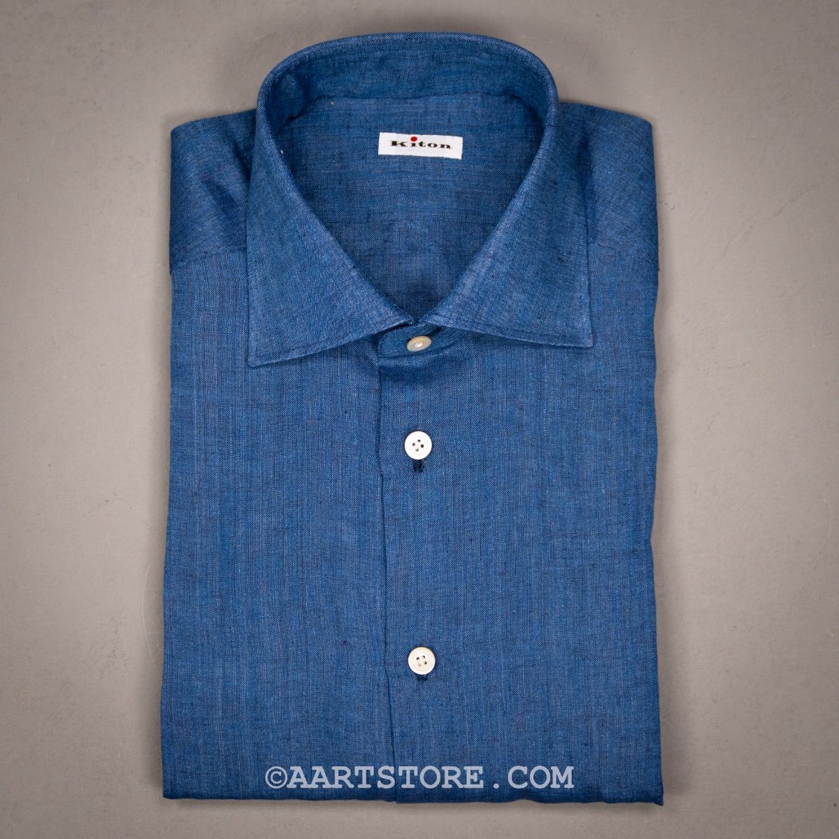 KITON is simpelweg het mooiste (merk) dat je als man kunt dragen. Dit Napolitaanse label heeft als motto: the best of the best +1, en dat is precies wat men doet. Bij ieder stuk is het uitgangspunt om simpelweg de best mogelijke versie te maken, alles met de hand. Dat zie je zeker bij de sublieme shirts van het label: deze zijn helemaal met de hand gestikt, artisanale kunst. Dit linnen shirt heeft een chambray effect waardoor er subtiele variaties in de kleur zitten. Dit geeft het hemd een nonchalante uitstraling. Dit past perfect op een korte broek, maar wel net zo mooi onder een jasje. stoer maar ook heel zacht om te voelen en rijk en daarmee draagt het comfortabel. Een Kiton shirt is daarmee misschien wel het beste shirt dat je ooit zult bezitten.