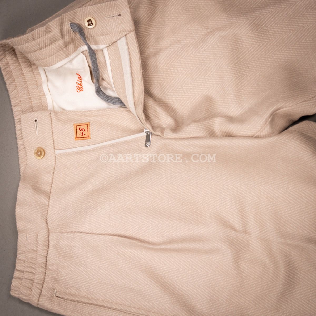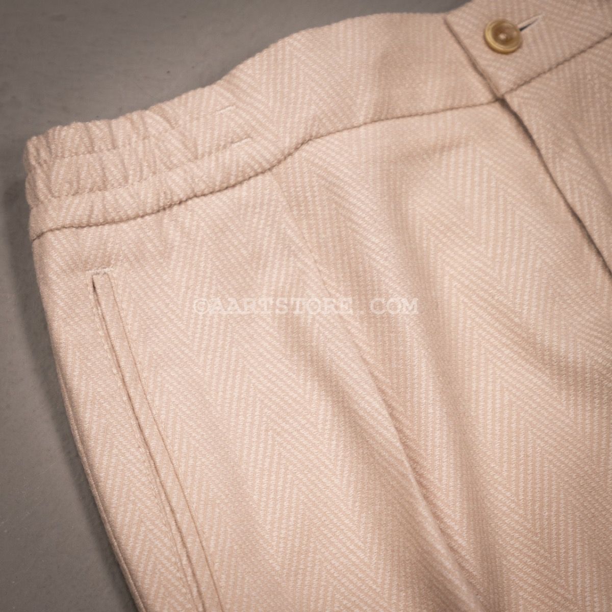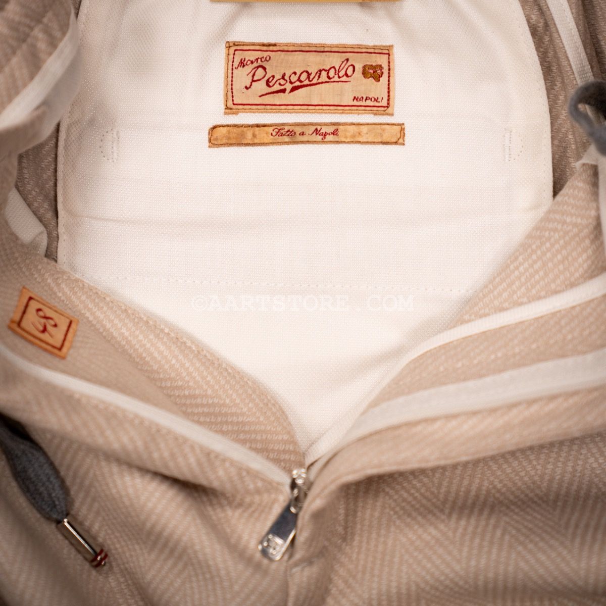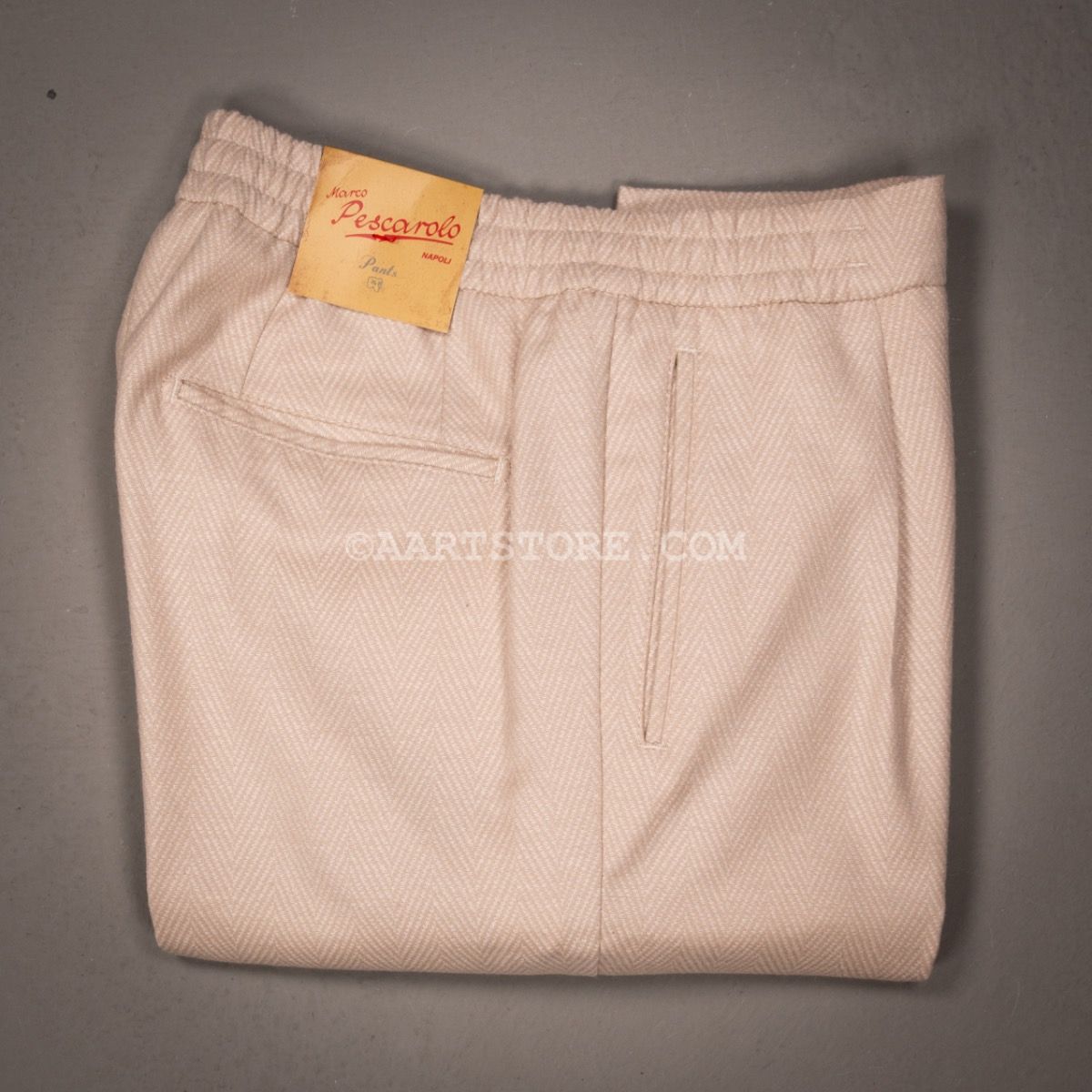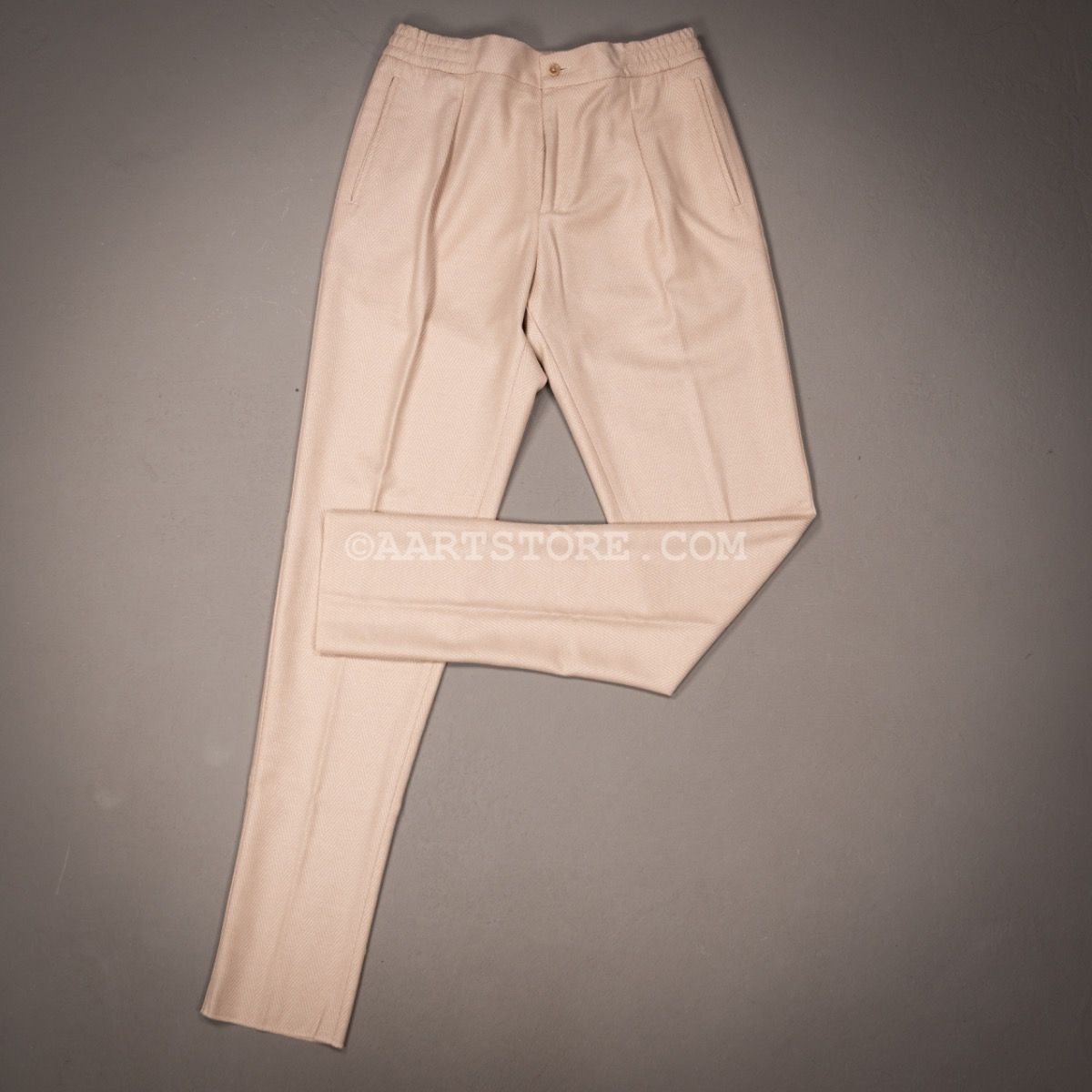 Pescarolo is een Napolitaanse broekenmaker die luxe combineert met een geheel eigen visie op hoe een broek moet zitten en vallen. Een prachtig bedrijf van twee (jonge) mannen die in staat zijn kunsten en stijlen van voorbije generaties te vertalen naar het nu. De Chiaia is het nieuwste model uit Napels. Het is een kruising van een relaxte drawstring en nette pantalon met een iets wijdere pasvorm op het bovenbeen en met een bandplooi. Dat geeft de Chiaia een hip en eigentijds silhouet dat zowel past bij een jasje als bij een stevige trui of lekker vest. Dat laatste zou overigens onze voorkeur hebben. Dit Jersey materiaal bestaat uit een mix van wol, cashmere en zijde en is uitermate comfortabel en door de visgraat heeft het een chique uitstraling.