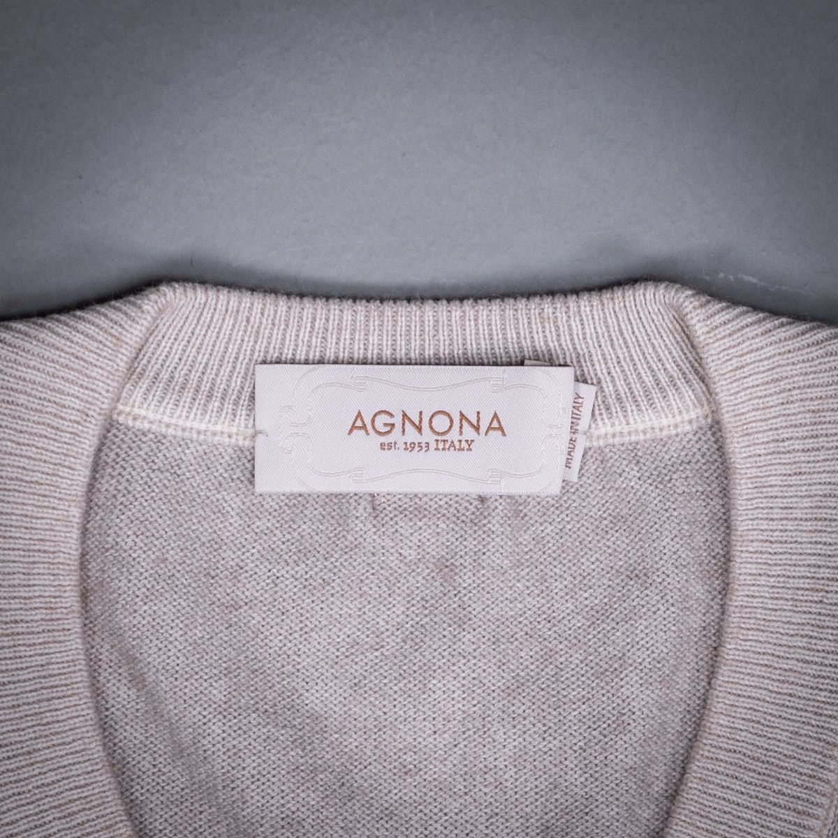 Agnona is de vergeten parel onder de Italiaanse brei- en stoffenhuizen. Begonnen in 1953 als een leverancier van cashmere, Vicuna en Alpacca wol aan huizen als Hermes en Chanel is het merk in de jaren ’60 van de vorige eeuw een synoniem geworden met Italiaanse luxe. Sinds een jaar of twee is Agnona terug en AART-Rotterdam is het enige adres in Nederland waar dit iconische merk verkocht wordt. Deze V-hals is een moderne interpretatie van een klassiek silhouet. Deze V-hals is heerlijk zacht door de combinatie van cashmere en pima katoen, licht en toch met een stevige uitstraling. Tijdloos op ene wit shirt maar ook perfect over een T-shirt voor een relaxte cool.