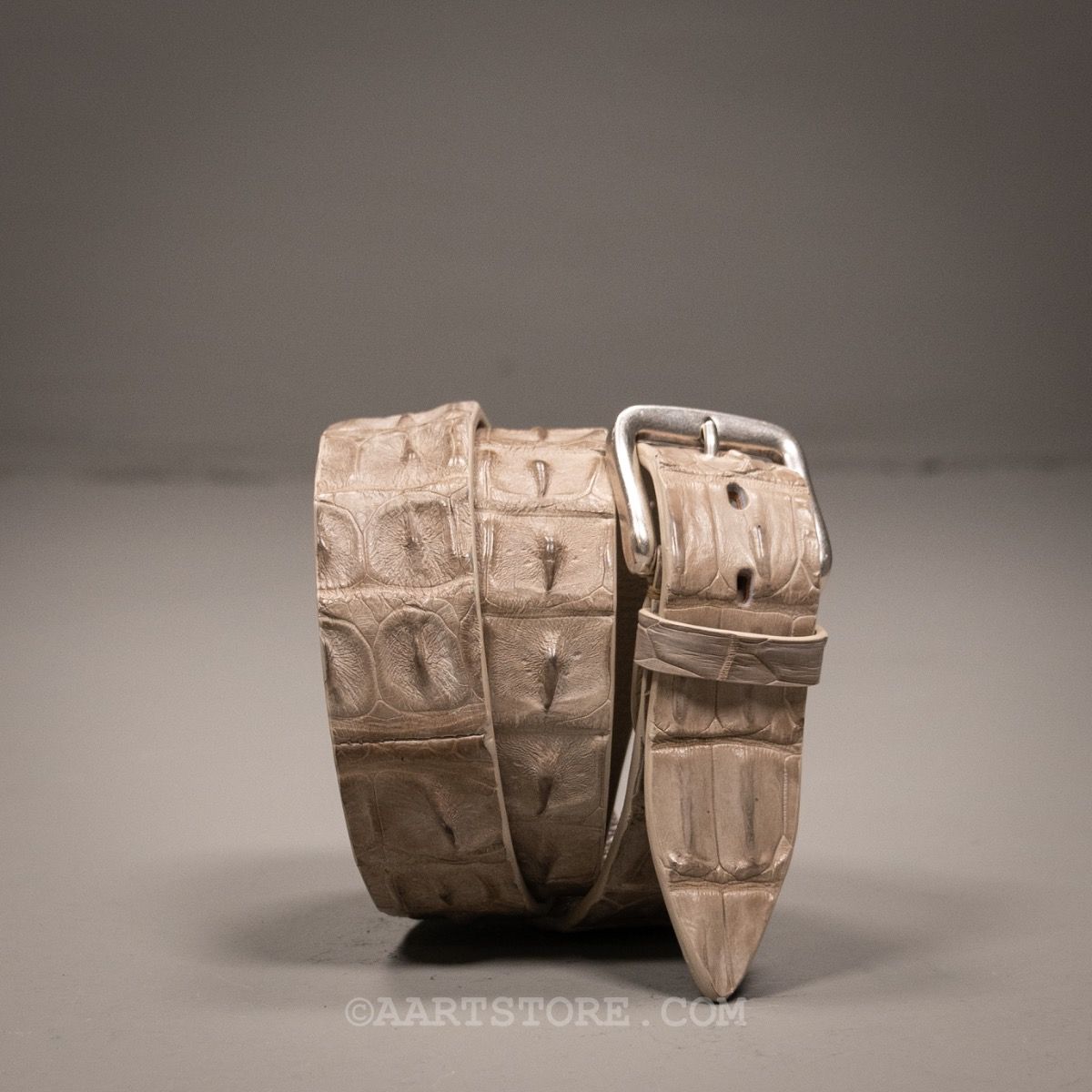 Paolo Vitale is een Italiaanse leerbewerker, gespecialiseerd in exotische leersoorten. Samen met AART maakt hij een collectie riemen die perfect past bij een luxe dressy casual look. Deze Croco riem is gemaakt van het rugdeel van een hornback, een stoere, ruige riem die een sieraad bij iedere denim. De breedte is met 5 cm zo dat de riem perfect past door de riemlussen van je Jacob Cohën of andere luxe denim.
