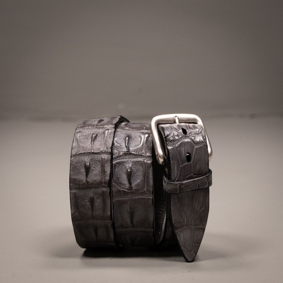 Paolo Vitale is een Italiaanse leerbewerker, gespecialiseerd in exotische leersoorten. Samen met AART maakt hij een collectie riemen die perfect past bij een luxe dressy casual look. Deze Croco riem is gemaakt van het rugdeel van een hornback, een stoere, ruige riem die een sieraad bij iedere denim. De breedte is met 5 cm zo dat de riem perfect past door de riemlussen van je Jacob Cohën of andere luxe denim.