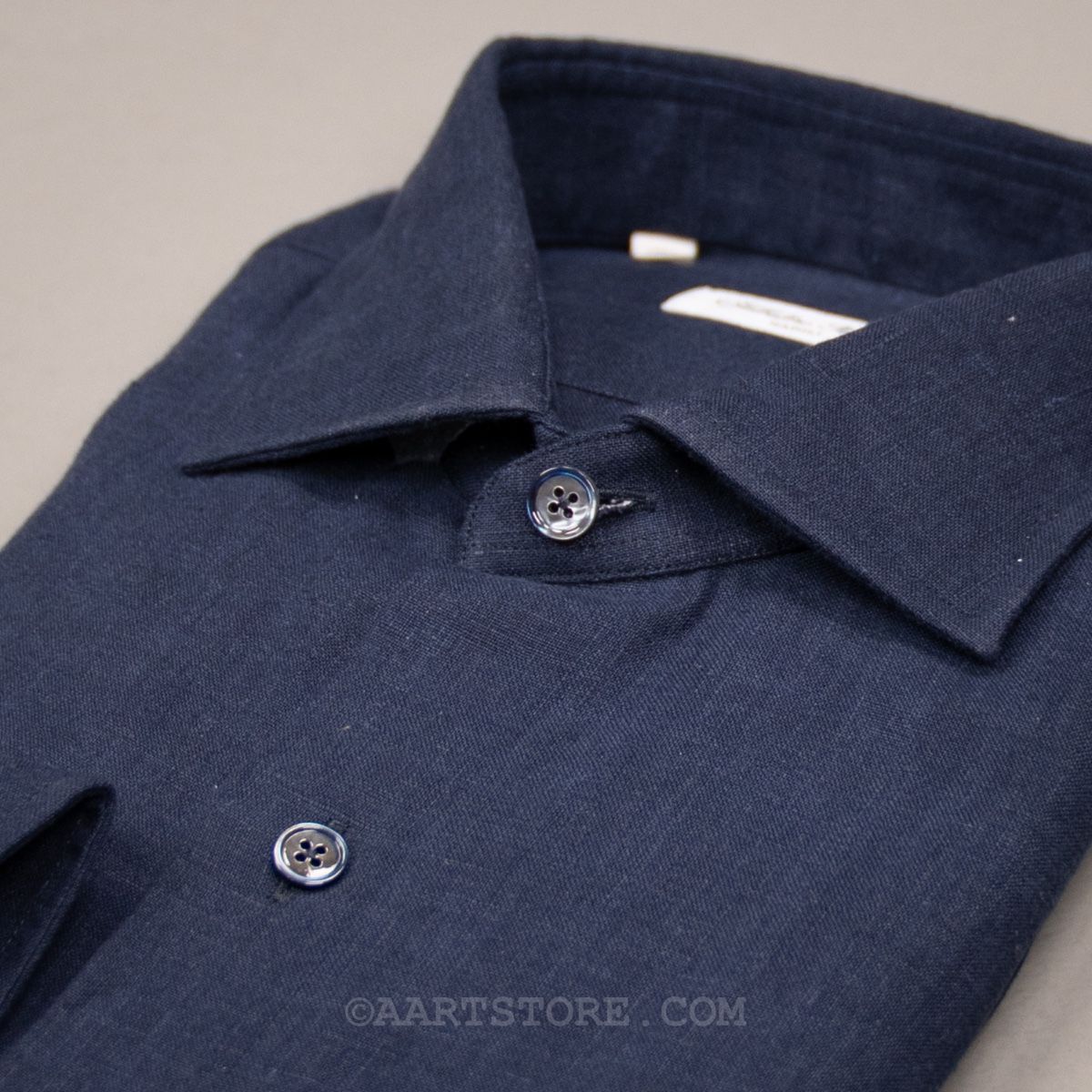 Salvatore Piccolo is een Napolitaanse shirtkunstenaar. Hij maakt een uniek en bijzonder rijk shirt dat zich onderscheidt van de massa. Het zijn handgemaakte hemden gesneden uit niet alledaagse stoffen die vaak speciaal voor Salvatore geweven worden. Dit shirt zit vol met details, maar mijn favoriet is wel de extra coupnaad in de mouw waardoor deze de natuurlijke kromming van de arm beter volgt. De linnen die Slvatore gebruikt voor dit shirt komt uit Japan en is opvallend stevig en compact geweven. Hierbij blijft de luchtige nonchalance van linnen wel behouden, maar het geeft het shirt wel body. Hierdoor heeft dit Piccolo shirt iets stevigs dat heel goed past bij afgewassen zomerdenims en sneakers.