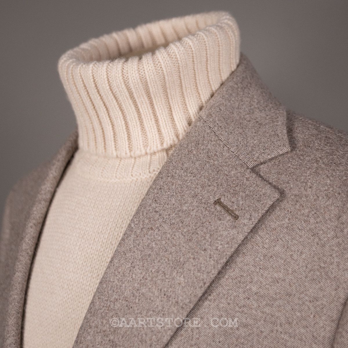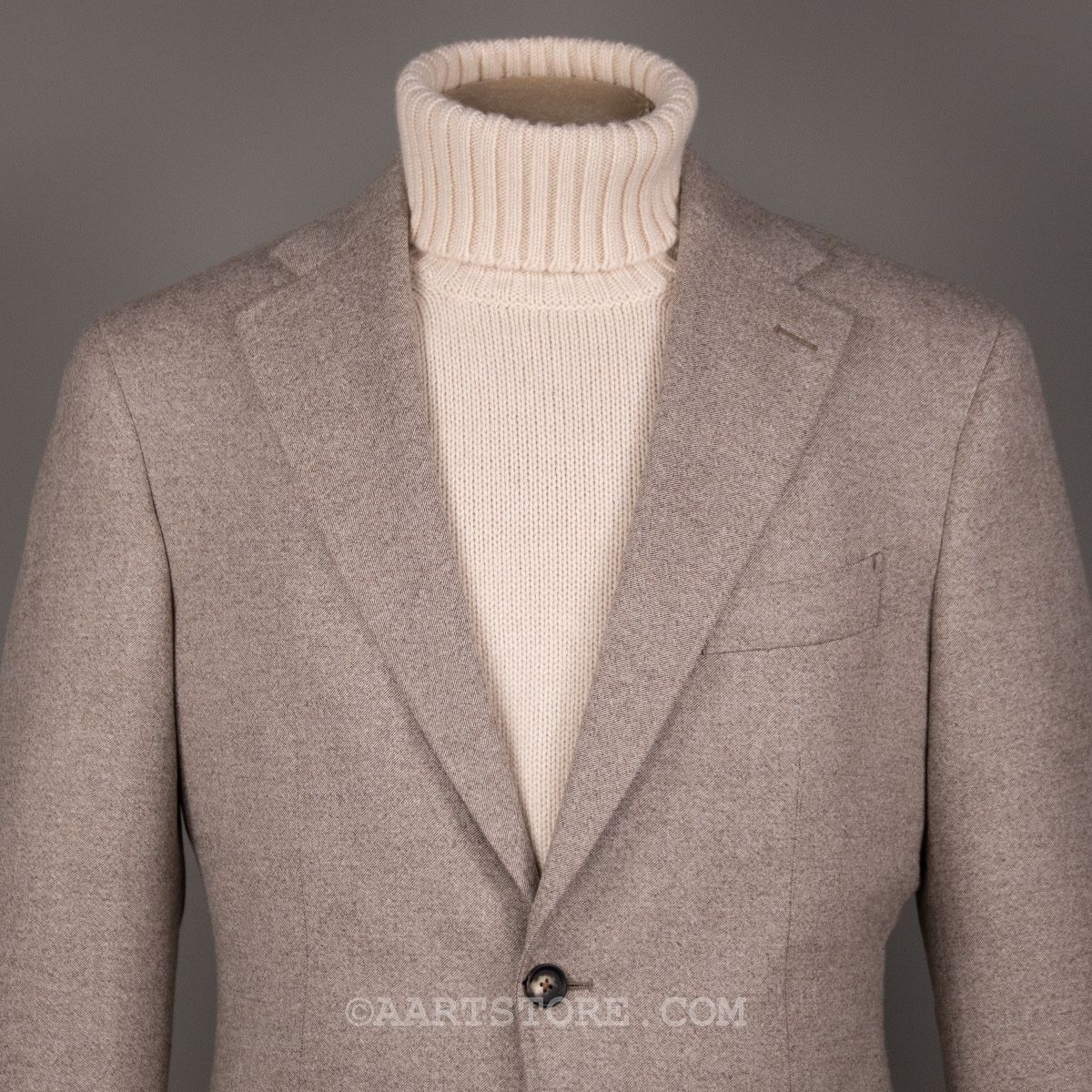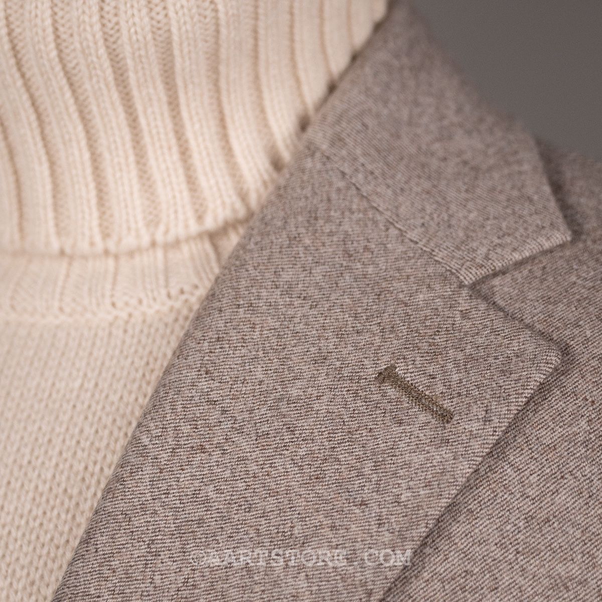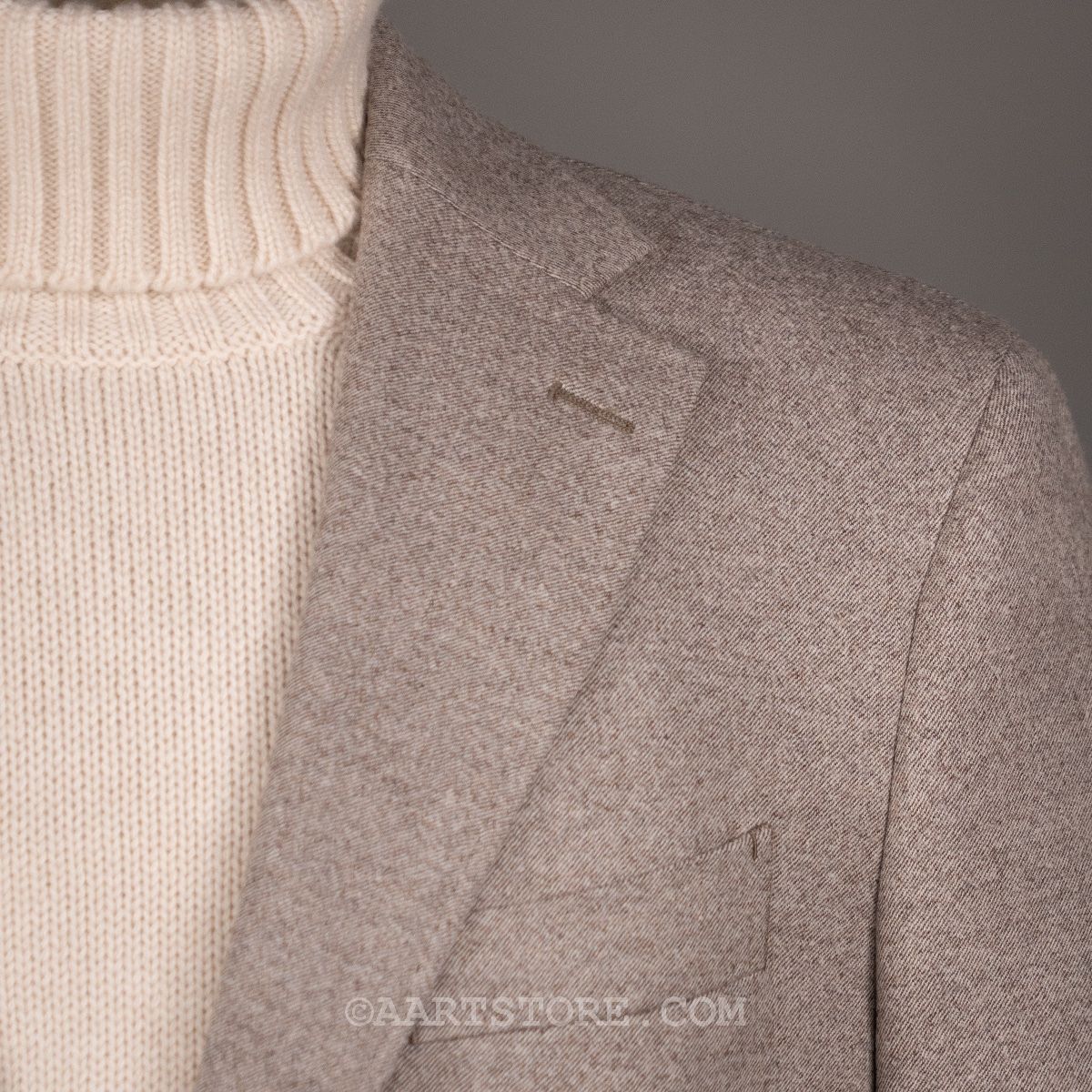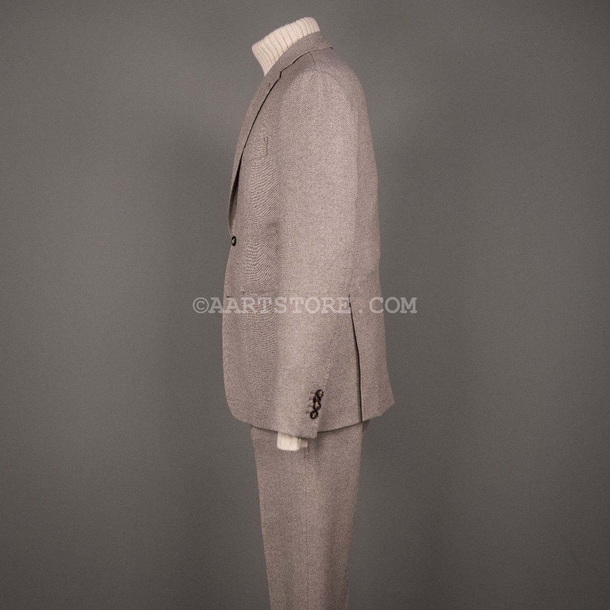 Dit nieuwe AART pak is een stevige evolutie van ons eerdere werk. Gemaakt met een super lichte maar wel full canvas constructie zweeft het jasje om je heen. Daar past het iets bredere revers en de napolitaanse schouder perfect bij.Net iets meer casual dan standaard is het prima te dragen als formeel pak, maar ook mooi met een trui of zelfs als los jasje. De broek heeft de uitstraling van een chino, met een in stof gemaakte binnenband en doorgestikte zoom. Door de pasvorm met één bandplooi is de broek moderner en iets losser, zonder dat het een Volendammer wordt. Elegant is hier het sleutelwoord. Gemaakt van Drago (een Italiaanse top-wever) flanel die door stretch iets meer comfort biedt dan je zou verwachten. En dan tot slot de kleur, die kan ik proberen te omschrijven maar die moet je gewoon ervaren en aanzien…