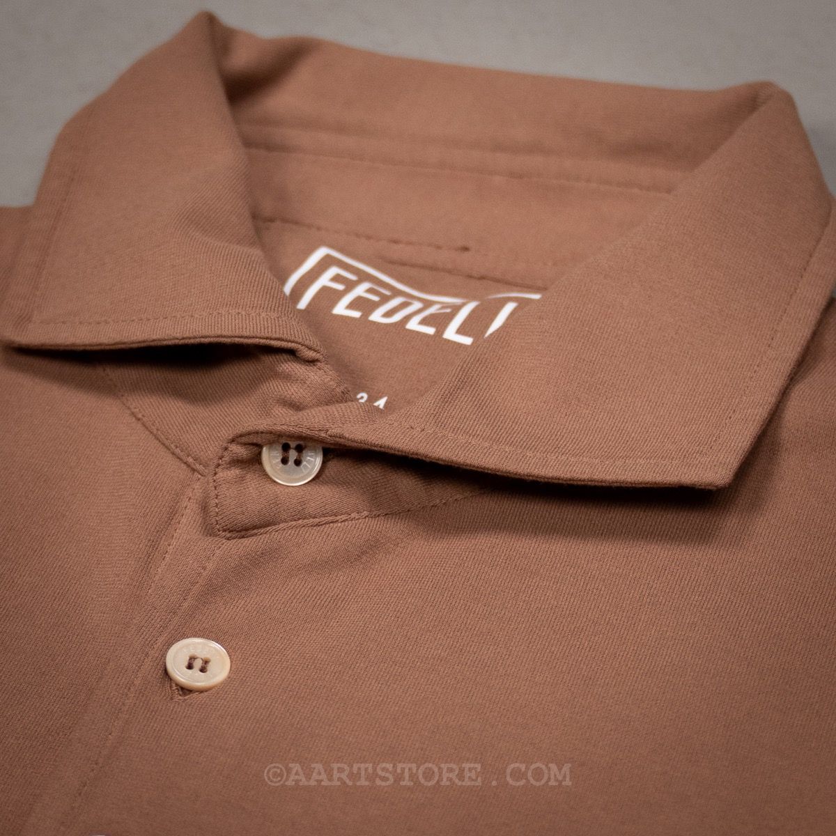 De Fedeli Dry Cotton jersey polo is een vernieuwde versie van de tijdloze Fedeli polo. Gemaakt van fijndradige Egyptische katoen is het doek zacht en rijk om te dragen. Door de specifieke manier van weven draagt het haast koeler dan zonder shirt. De polo wordt gemaakt met een geconfectioneerde kraag, zoals een overhemd in tegenstelling tot de gebreide kraagjes op de meeste polo’s. Dit maakt de hele uitstraling gekleed en verfijnd, het hand geverfde effect heeft iets casual, een schijnbare tegenstelling die tot perfectie leidt.