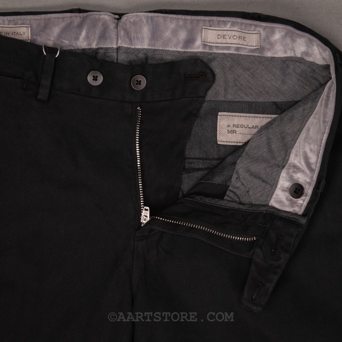 Devore is een Napolitaanse broekenspecialist. Jarenlang maakte dit familiebedrijf vooral broeken voor andere partijen en hierdoor staan ze in de business bekend als een uiterst vakkundige en betrouwbare partner. Sinds een paar jaar maakt Devore hun eigen collectie; bijzonder mooi gemaakte broeken voor een alleszins redelijke prijs. De constructie is prachtig gemaakt van verschillende materialen waardoor een speels effect ontstaat. De broekband is een uitvinding van Devore, de Flexowaist geeft extra comfort bij bewegen en zitten zonder dat de broek afzakt. Het model is eigentijds, met iets meer ruimte en een pasvorm die toeloopt naar de voet. Deze Fall twill chino is een nieuwe stof die heel zacht en rijk voelt. Gemaakt van katoen, Lyocel (Eucalyptustak) en stretch biedt dit materiaal comfort en bewegingsvrijheid. Deze chino is clean genoeg om hem te dragen bij een jasje, maar uiteraard ook bij een trui of andere knitwear. (NB. de lengte van de Devore broeken is aangepast, ze zijn iets langer dan voorheen waarbij de grotere maten meer langer zijn geworden. Nu vergelijkbaar met o.a. Jacob Cohën).