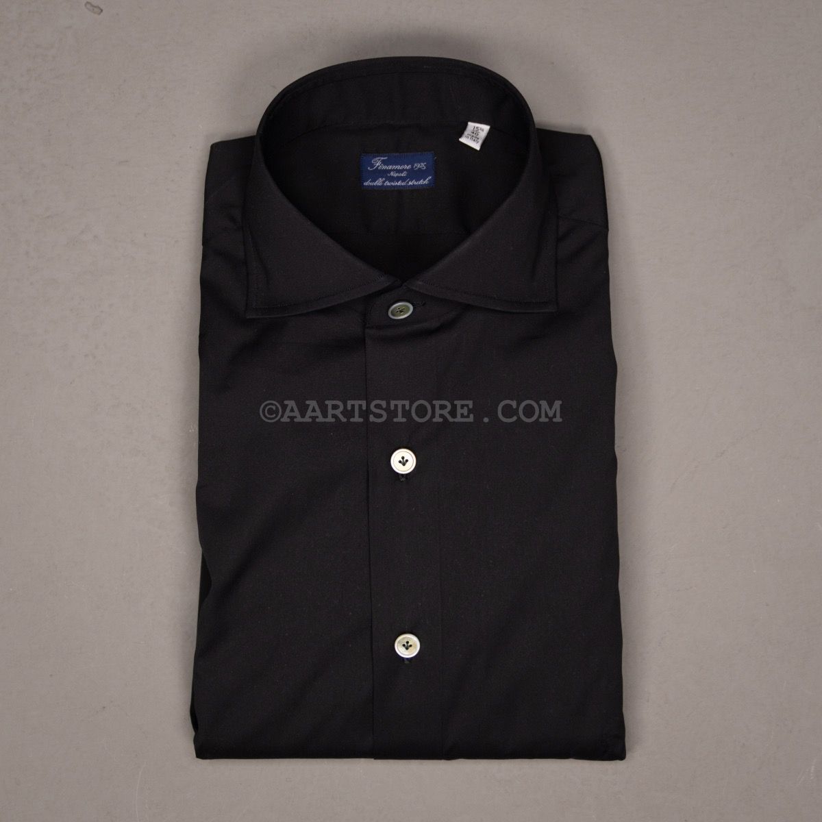 De shirts van Finamore behoren tot de wereldwijde top. Met veel handgemaakte details is dit het perfecte Napolitaanse shirt. De kraag is met een handsteek vastgezet, de mouwen hebben typisch Italiaanse plooitjes. De pasvorm is aan het lichaam gesneden maar wel met voldoende comfort met een genereuze lichaams- en mouwlengte. Dit shirt is gesneden uit katoen met stretch met een satijn finish; goed dressy te dragen maar minstens zo mooi op een jeans. Het is draagbare luxe, combineerbaar als dressshirt, dus het past goed onder een jasje, maar het heeft ook ene casual touch. Het is ook perfect te dragen bij een jeans of op cord en zelfs onder een fijne trui. Een kleine waarschuwing: het dragen van Finamore shirts kan verslavend werken…