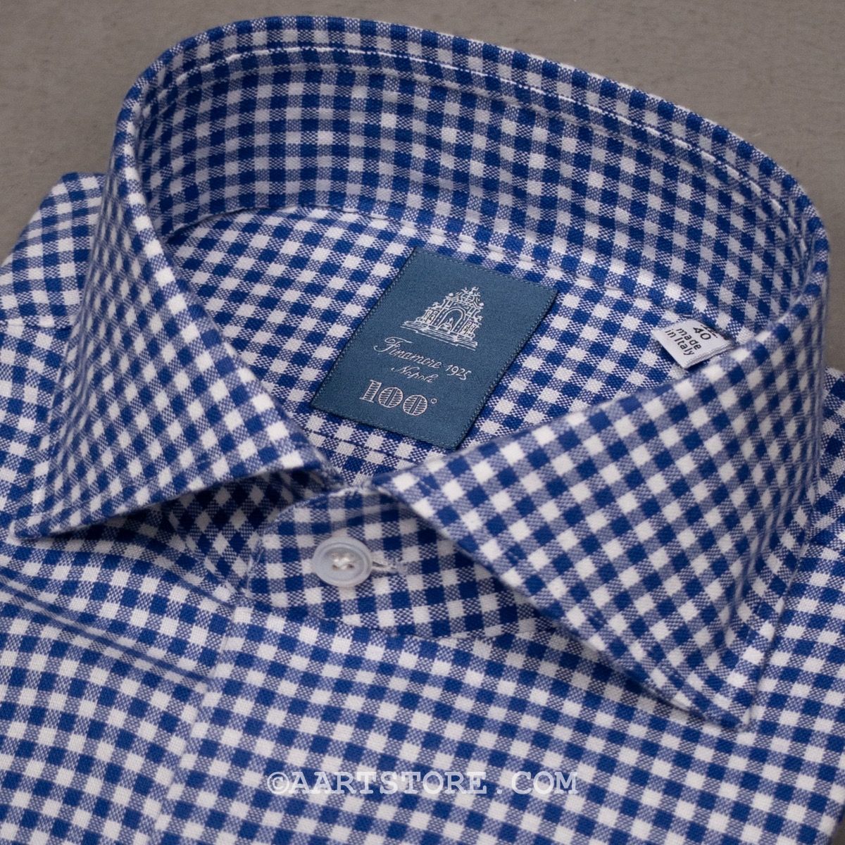 De shirts van Finamore behoren tot de wereldwijde top. Met veel handgemaakte details is dit het perfecte Napolitaanse shirt. De kraag is met een handsteek vastgezet, de mouwen hebben typisch Italiaanse plooitjes. De pasvorm is aan het lichaam gesneden maar wel met voldoende comfort met een genereuze lichaams- en mouwlengte. Dit shirt is gesneden uit een stevige oxford in een tijdloze gingham ruit in een mooie inktblauwe tint. Dit materiaal is prima te dragen bij een jasje of pak, maar het is ook zeker casual te dragen. Combineer het met een jeans of chino, onder een lekkere cashmere trui. Een kleine waarschuwing: het dragen van Finamore shirts kan verslavend werken…