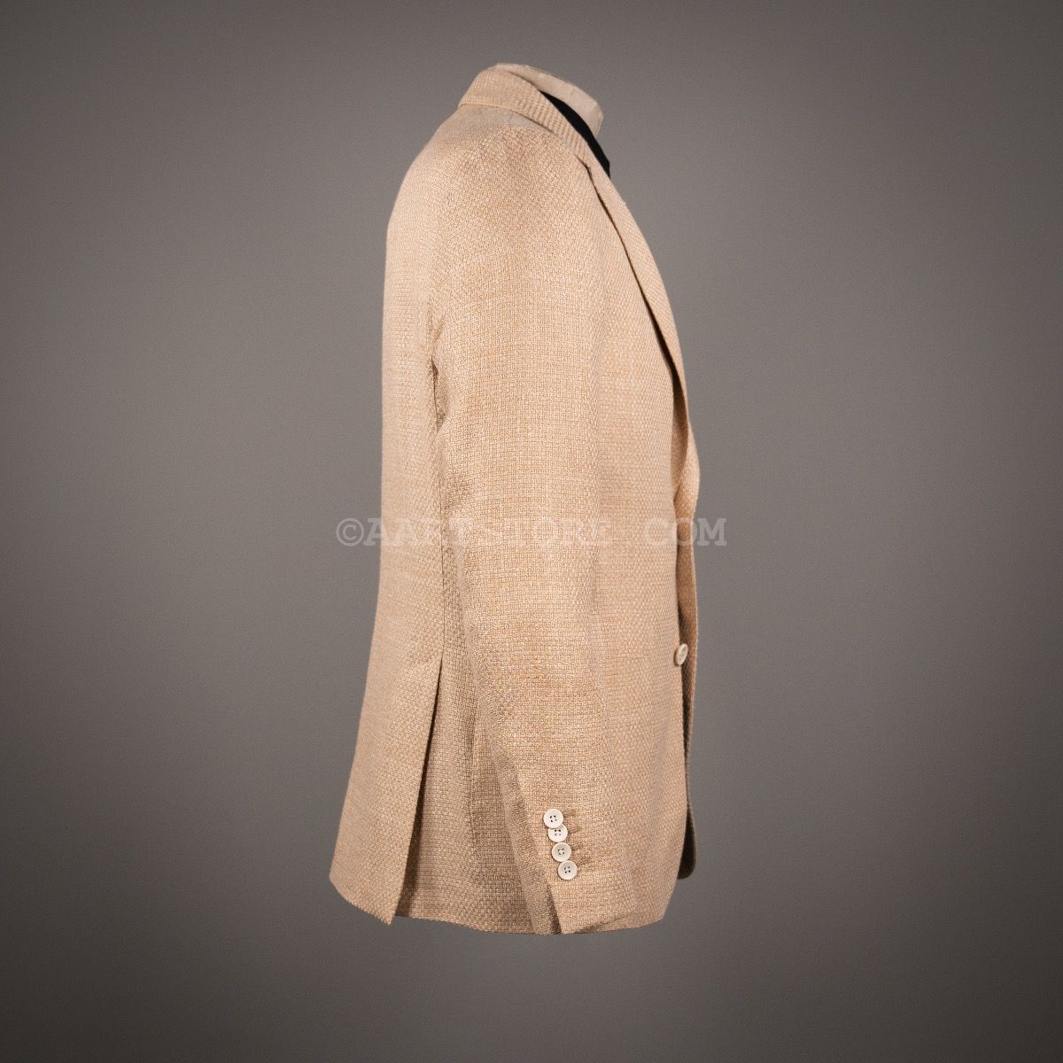 Lardini heeft een heel eigen kijk op de goed geklede man. Jasjes gemaakt met een soort relaxte touch, maar toch wel draagbaar voor meer formele aangelegenheden. Het idee is dat de colberts gemaakt zijn met minimale structuur, maar net voldoende om wel de kleermakers uitstraling te behouden; uniek en prachtig. Dit zomerjasje heeft een basketweave, een duidelijk zichtbaar weefpatroon dat doet denken aan vlechtwerk. De combinatie van wol, vlas en zijde maakt het een perfect zomerjasje omdat het licht draagt en voelt maar wel een stoere uitstraling heeft. De goudbeige kleur past perfect binnen een zomergarderobe, mooi bij licte denims en wij wit en off-white.