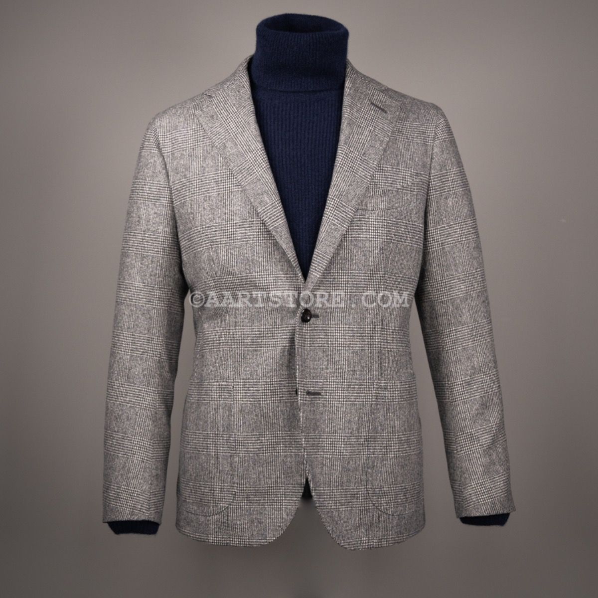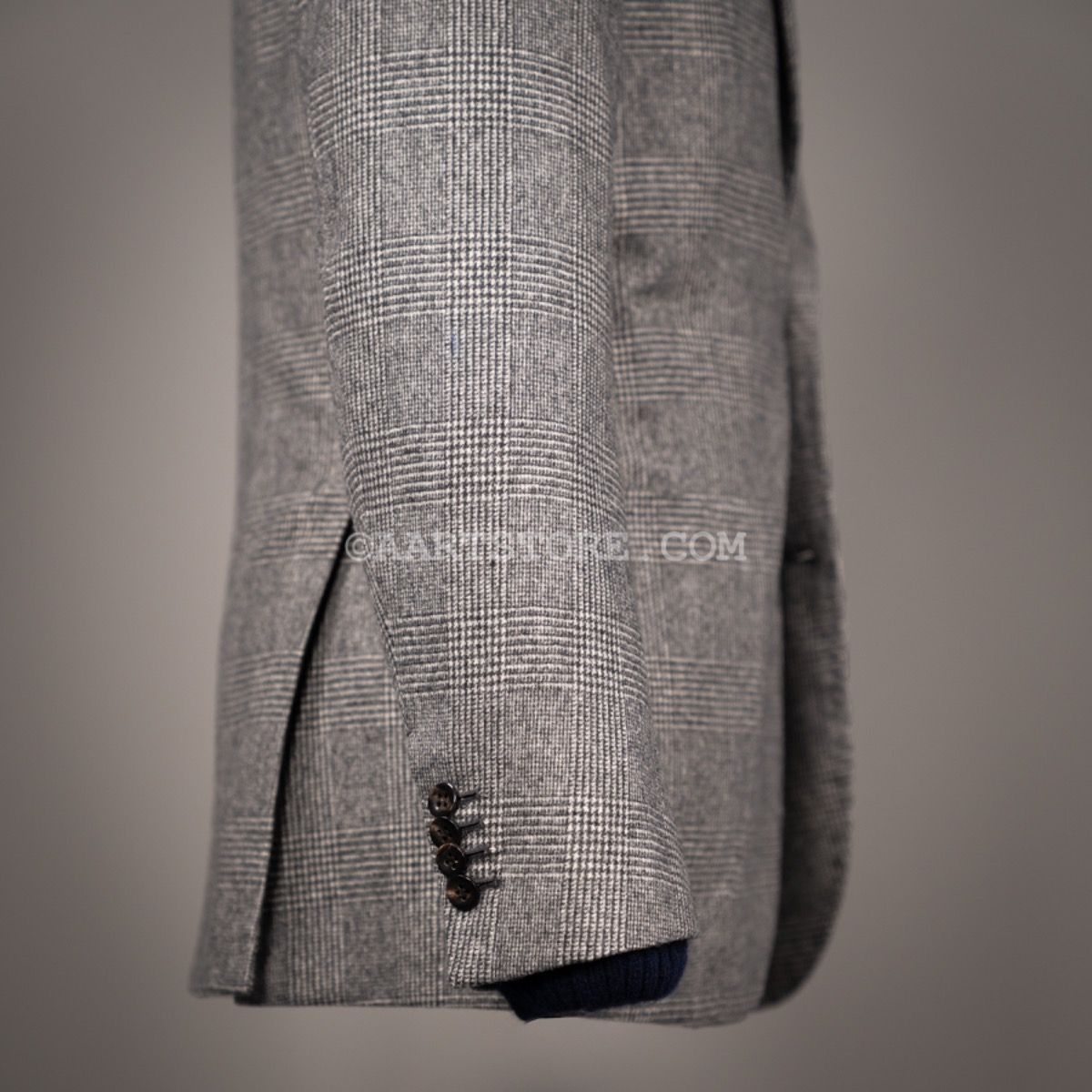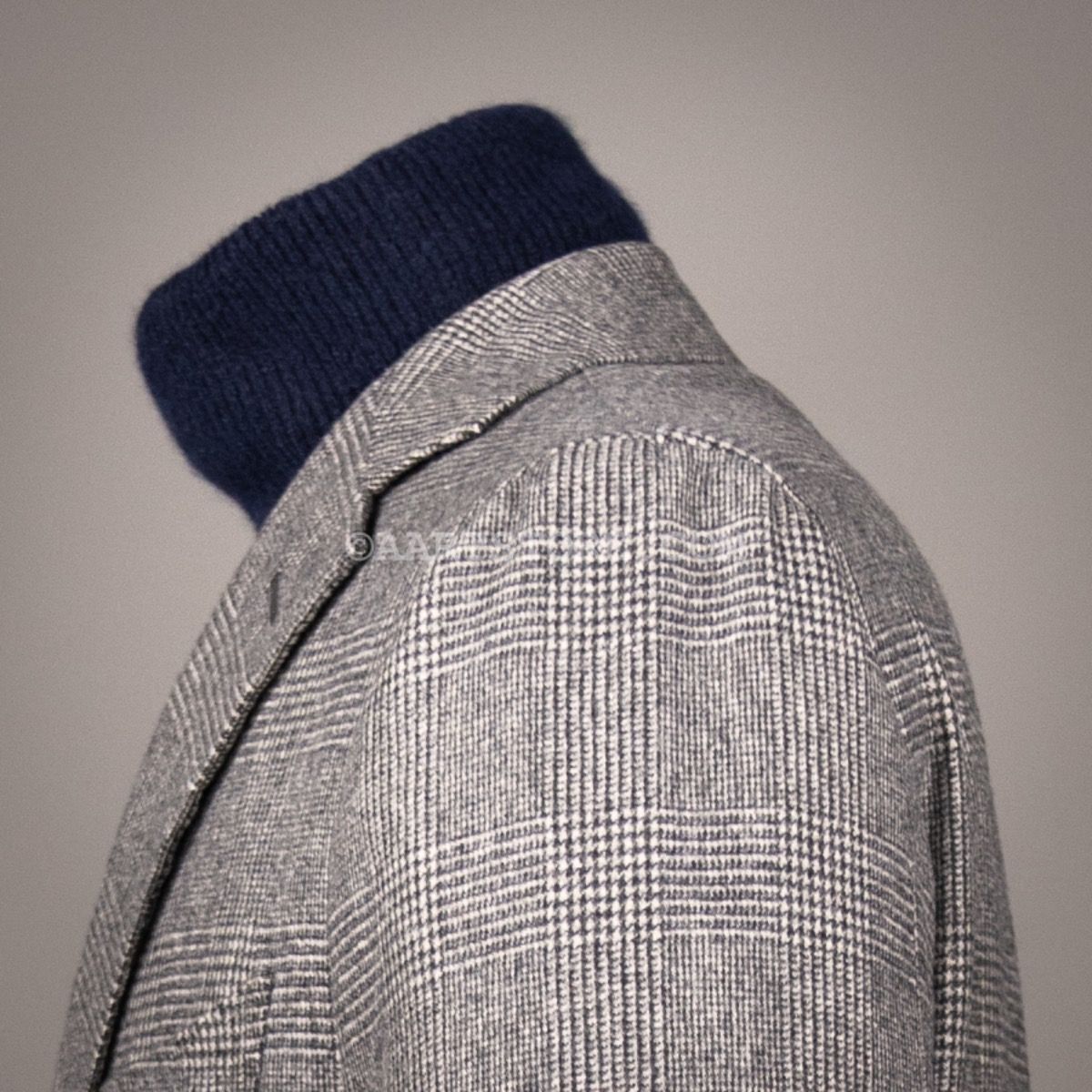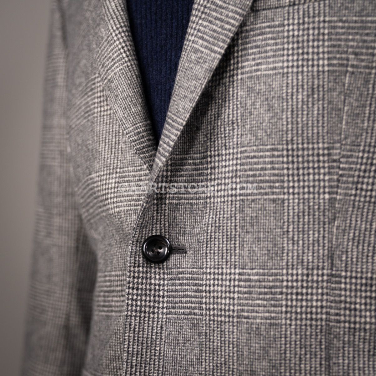 Saint Gregory is de belichaming van ware exclusiviteit. Dit is een heel kleine kleermakerij (8 man, minder dan vijfhonderd stuks per jaar) in Napels. Het is het geesteskind van Ennio Collaro Valente, een ware Napolitaan met die typische Zuid-Italiaanse smaak en manier van doen. Bij Saint Gregory maken ze alle jasjes en pakken in huis, volledig met de hand. Wij kennen eigenlijk geen mooier gemaakt product, zo veel vakmanschap en liefde in ieder stuk. Dit jasje doet denken aan de vervlogen hoogtijdagen van de Engelse mode. Deze Glenncheck was ook geliefd bij mannen als Edward de 8e, Prins Phillip en Lord Mountbatten, mannen met stijl en klasse. Zoals alle echte kleermakers is men bij Saint Gregory ook dol op Engelse stoffen, en daar komt dit doek dan ook vandaan: Fox Brothers, het beste dat het VK te bieden heeft. Dit prachtige jasje past perfect bij een corduroy of denim broek met een coltrui of denim shirt. Voor een stoere, noch elegante uitstraling.