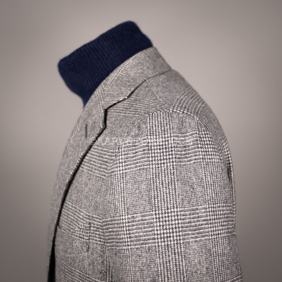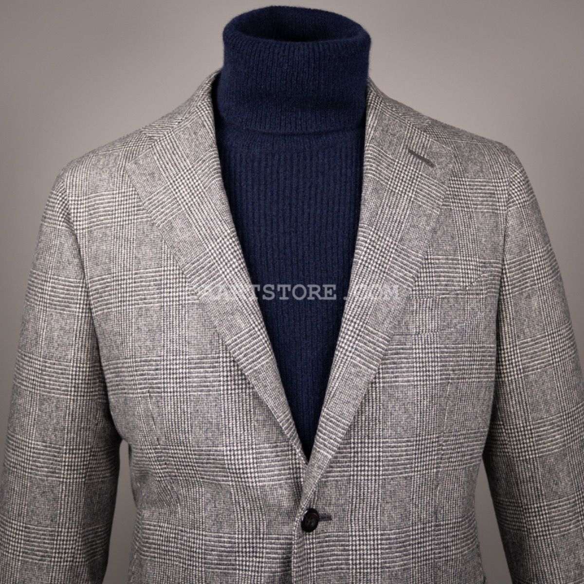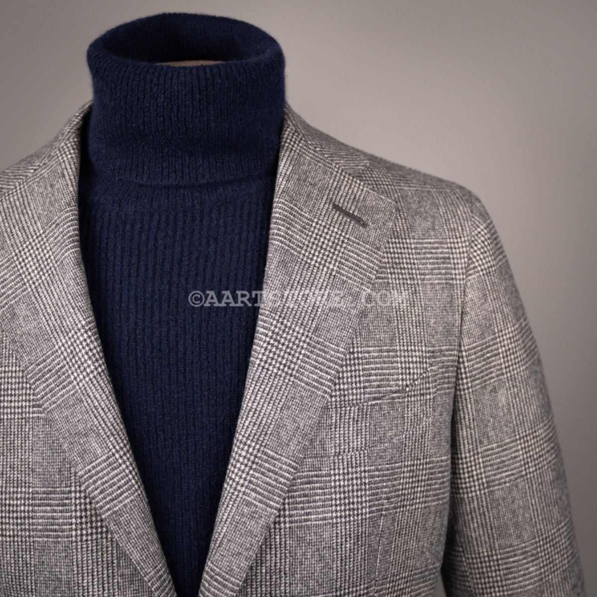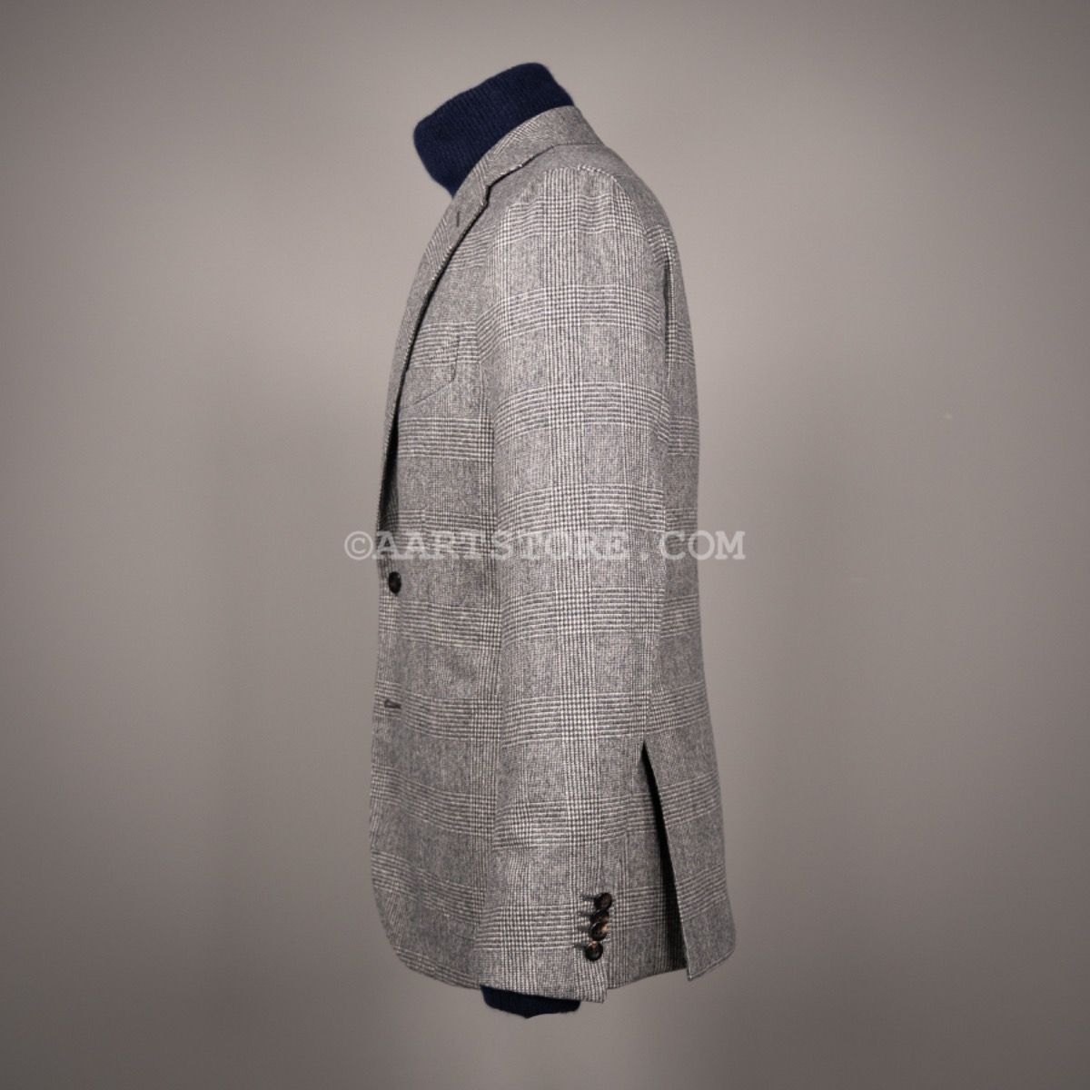 Saint Gregory is de belichaming van ware exclusiviteit. Dit is een heel kleine kleermakerij (8 man, minder dan vijfhonderd stuks per jaar) in Napels. Het is het geesteskind van Ennio Collaro Valente, een ware Napolitaan met die typische Zuid-Italiaanse smaak en manier van doen. Bij Saint Gregory maken ze alle jasjes en pakken in huis, volledig met de hand. Wij kennen eigenlijk geen mooier gemaakt product, zo veel vakmanschap en liefde in ieder stuk. Dit jasje doet denken aan de vervlogen hoogtijdagen van de Engelse mode. Deze Glenncheck was ook geliefd bij mannen als Edward de 8e, Prins Phillip en Lord Mountbatten, mannen met stijl en klasse. Zoals alle echte kleermakers is men bij Saint Gregory ook dol op Engelse stoffen, en daar komt dit doek dan ook vandaan: Fox Brothers, het beste dat het VK te bieden heeft. Dit prachtige jasje past perfect bij een corduroy of denim broek met een coltrui of denim shirt. Voor een stoere, noch elegante uitstraling.