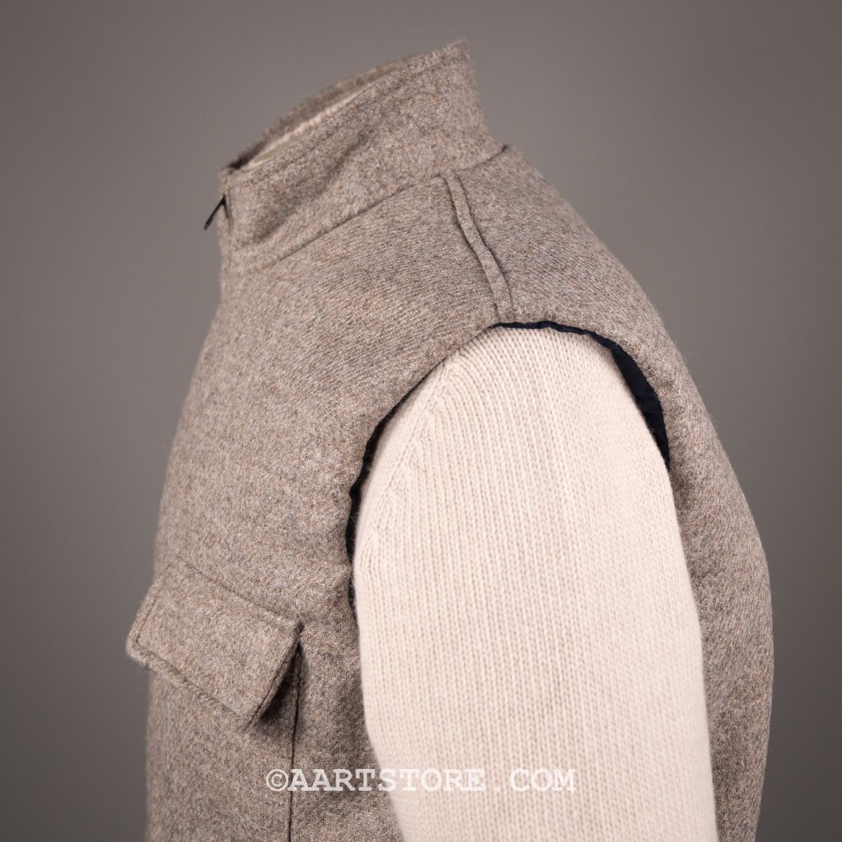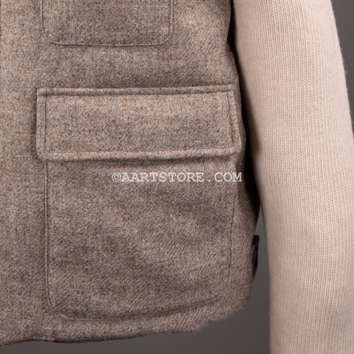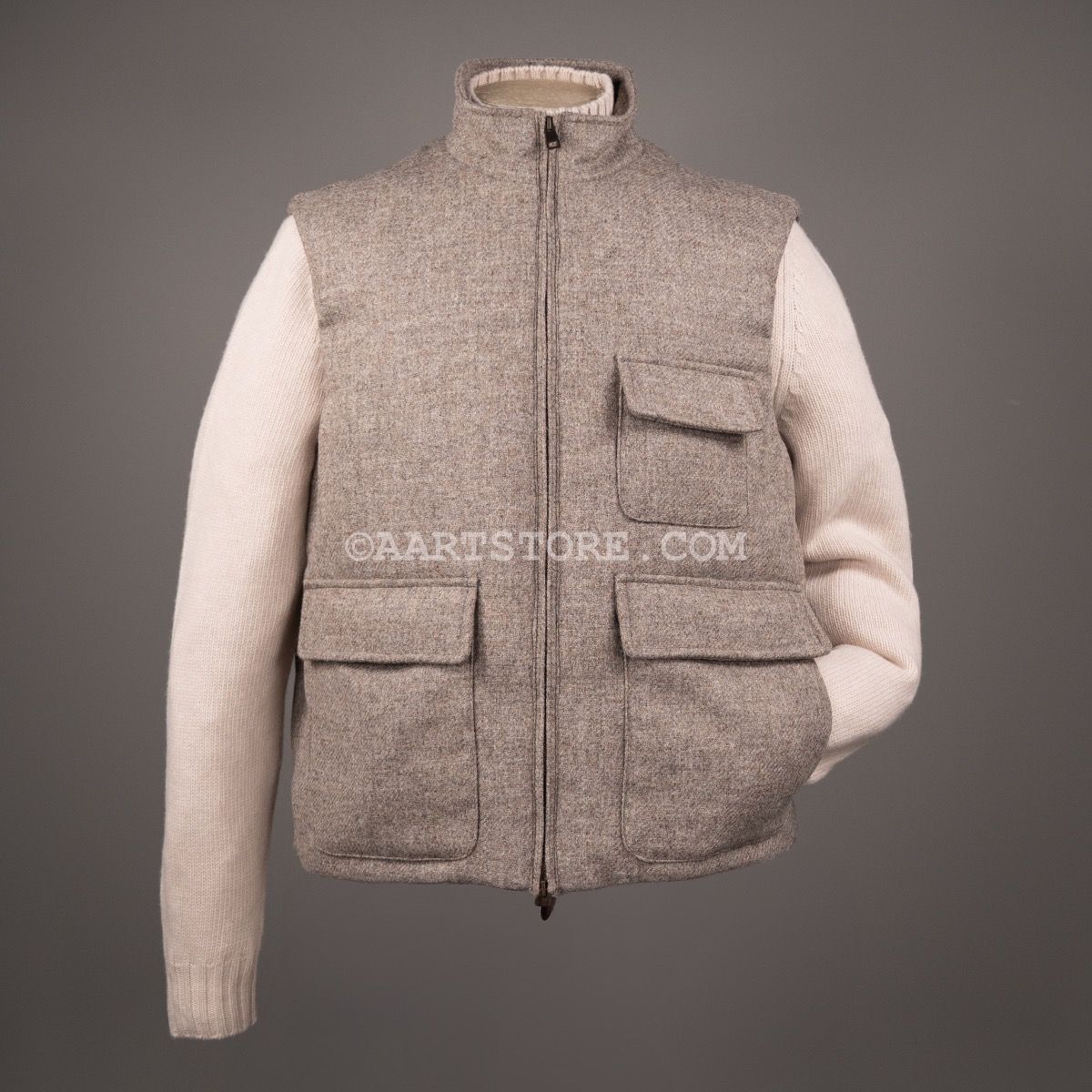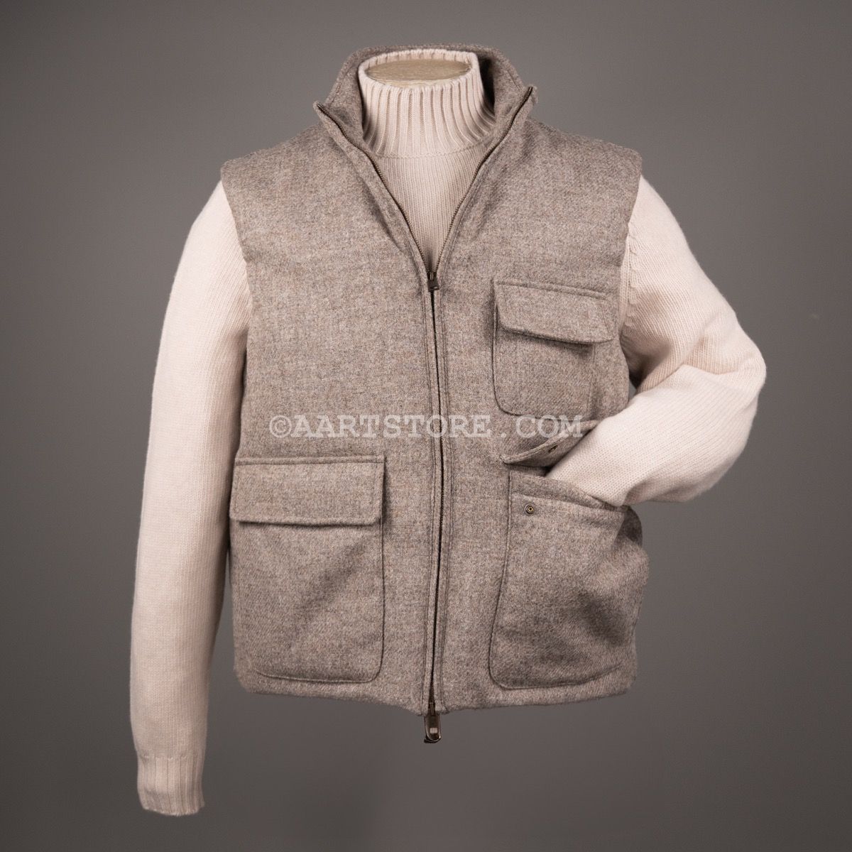 L’impermeabile is een van onze nieuwste merken maar tegelijkertijd is het ook een van de oudste merken in ons arsenaal. Het stamt uit de jaren na de eerste wereldoorlog als Italiaans antwoord op de toen mateloos populaire regenjassen van Britse merken als Aquascutum en Burberry. Daarna is het merk wat in vergetelheid geraakt totdat de huidige eigenaar het ‘vond’ in de nalatenschap van zijn vader… Dit Gunners vest is een lekker stevige bodywarmer die heel goed past bij de stoere uitstraling van de hele wintercollectie. Draag dit vest met een lekkere coltrui, suède boots en een Pescarolo broek en je bent klaar voor de winter.