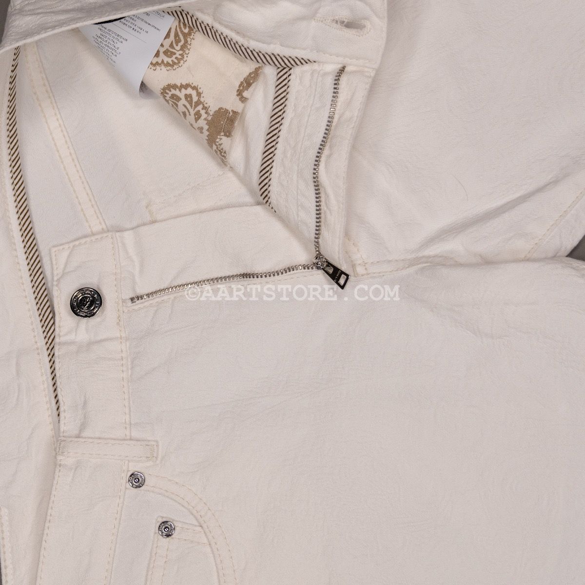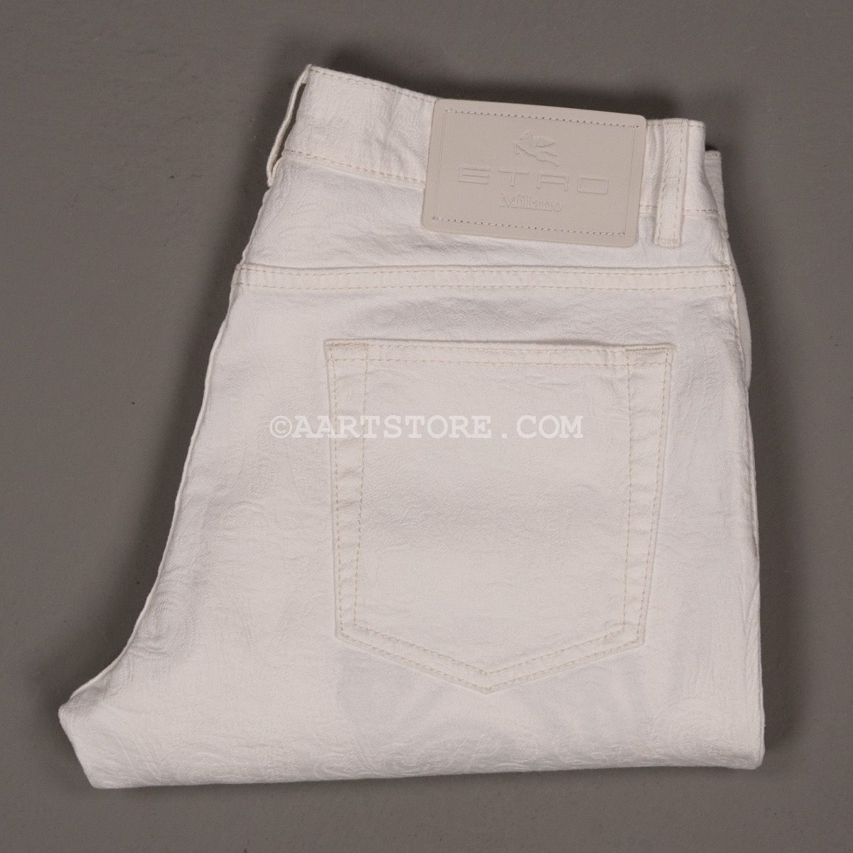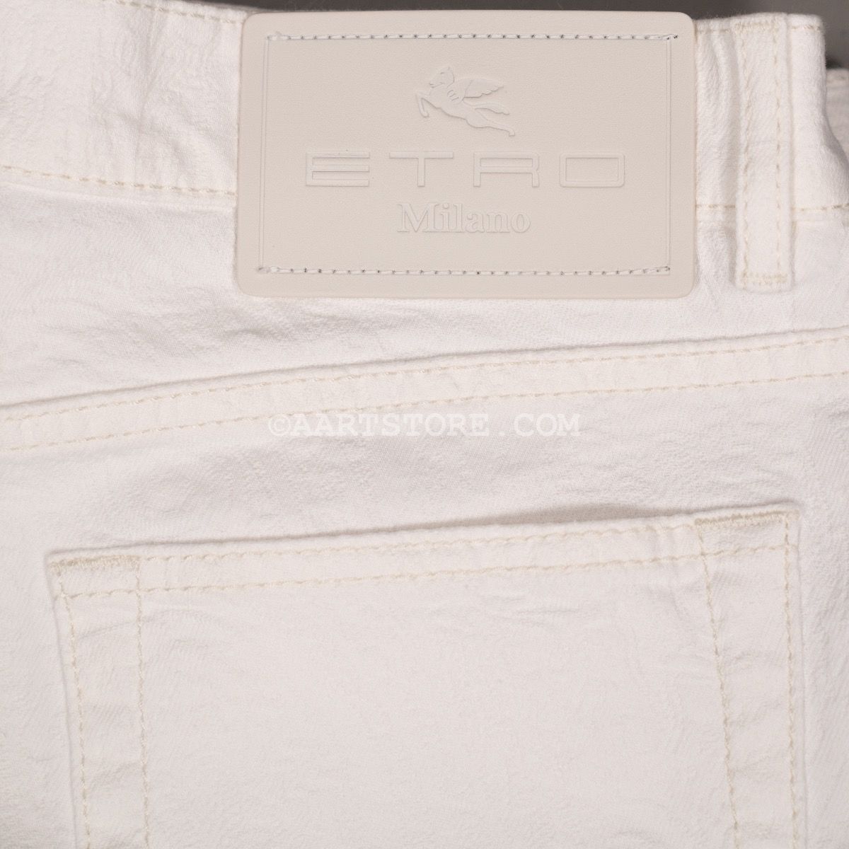 ETRO was oorspronkelijk een familiebedrijf in interieurstoffen. Een merk waar uitbundige kleuren en vrolijke ontwerpen samengaan tot een stijlvol geheel. Deze jeans is typisch ETRO, gesneden uit een echte denim die speciaal ontwikkeld is voor het label: met ingeweven paisley motief. Dit geeft de jeans een rijke en unieke uitstraling, zonder dat het de draagbaarheid belemmert. Een vrolijke zomerbroek die perfect te dragen is met een T-shirt of polo, maar net zo goed staat met een jasje.