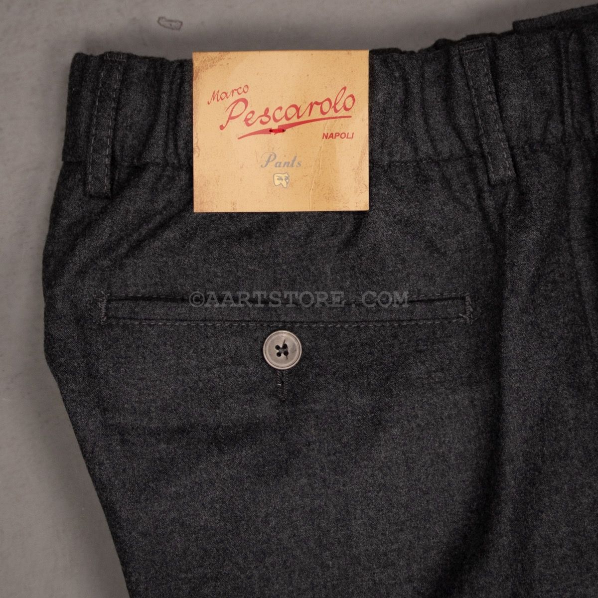 De Manu is de kruising tussen een chino en een relaxte drawstring. Een elegant silhouet in combinatie met verfijnde details en onvoorstelbaar draagcomfort. Deze Manu is het absoluut mooiste dat Pescarolo te bieden heeft, in een puur cashmere twill met die geflaneliseerd is voor uitstraling en comfort. Het is een broek die uiteraard op zijn plaats is onder een jasje, maar net zo goed past bij een trui of shirt.