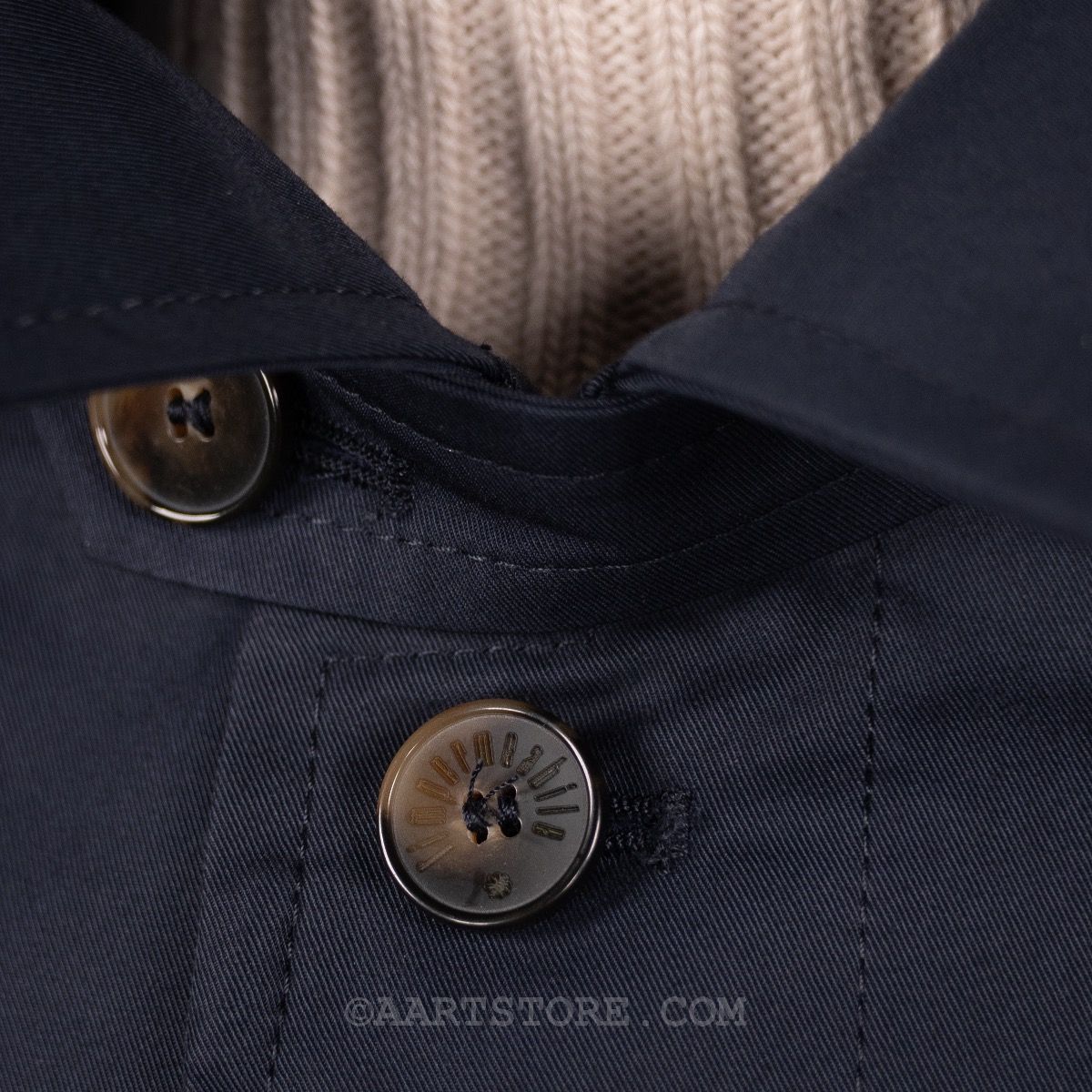 L’impermeabile is een van onze nieuwste merken maar tegelijkertijd is het ook een van de oudste merken in ons arsenaal. Het stamt uit de jaren na de eerste wereldoorlog als Italiaans antwoord op de toen mateloos populaire regenjassen van Britse merken als Aquascutum en Burberry. Daarna is het merk wat in vergetelheid geraakt totdat de huidige eigenaar het ‘vond’ in de nalatenschap van zijn vader… De Martin is de tijdloze single breasted raincoat van dit label. Lang genoeg om over een pak of jasje gedragen te worden, maar ook weer niet te lang; vlot genoeg voor bij chino of denim. Gemaakt van een katoen mix die de elementen buitenhoudt maar wel comfortabel draagt. Daarnaast heeft de Martin een uitknoopbare wollen voering voor koudere dagen. Zonder de voering is het een uitermate geschikte regenjas voor voor- en najaar. Kortom: een perfecte jas voor praktisch iedere dag en ieder gebruik!
