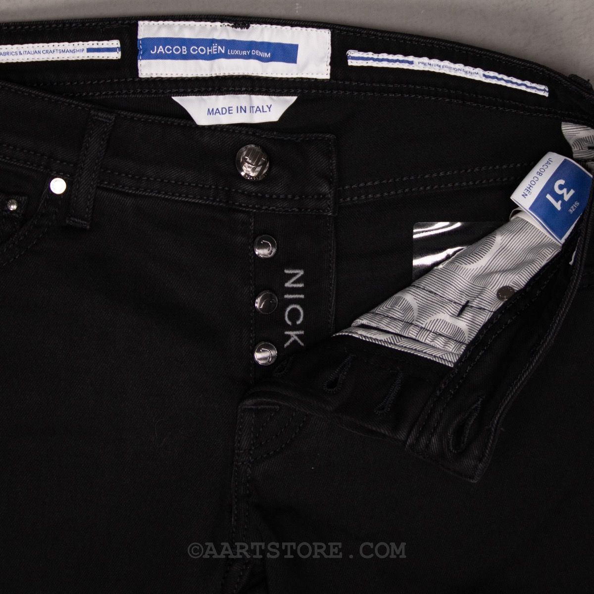 De Nick van Jacob Cohën is het slim fit model van dit Iconische, Italiaanse denim label. Een jeans die de traditionele spijkerbroek ver overstijgt. Met kleermakersdetails en hoogwaardige materialen en details is dit de meest luxe denim die je kan dragen. De Knight is een ingetogen zwarte denim. Gemaakt van een heel zachte rijke stof met een heel lichte wassing waardoor de zwarte uitstraling behouden blijft. Ook de stiksels en het label zijn ingetogen zwart zodat deze broek zeker in de smaak zal vallen bij liefhebbers van een minimalistische look.