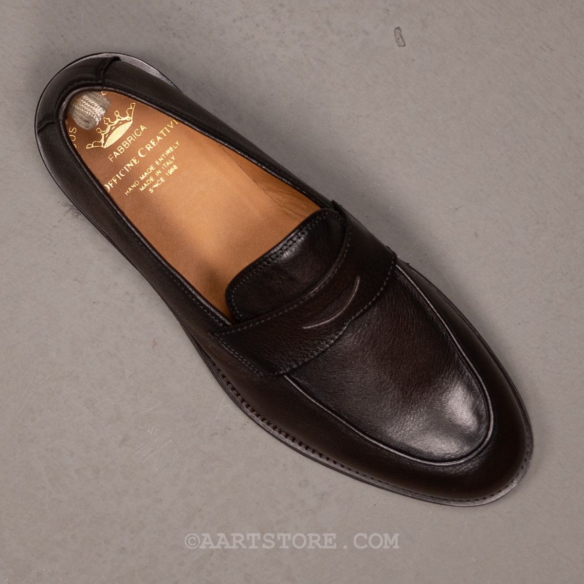 Officine Creative is een Noord-Italiaanse schoenmaker die de dingen op een traditionele manier net anders doet. De schoenen worden met de hand gemaakt op de traditionele (correcte) manier, maar de modellen en de finishing maakt dit juist eigentijds en cool. De Opera is gebaseerd op een geklede loafer maar dan in een moderner, iets meer casual jasje. Het gebruikte hertenleer is onvoorstelbaar zacht en voegt zich naar de voet en looppatronen van de drager. De opera draag je onder een iets casual pak in flanel of bij zware katoen en dan bij voorkeur in een iets wijdere fit zodat de sok verdwijnt onder de broek.