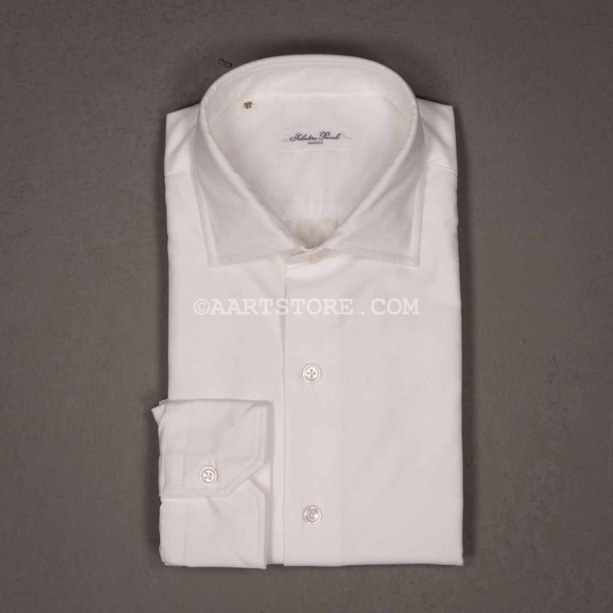 Salvatore Piccolo is een Napolitaanse shirtkunstenaar. Hij maakt een uniek en bijzonder rijk shirt dat zich onderscheidt van de massa. Het zijn handgemaakte hemden gesneden uit niet alledaagse stoffen die vaak speciaal voor Salvatore in Japan geweven worden. Dit shirt zit vol met details, maar mijn favoriet is wel de extra coupnaad in de mouw waardoor deze de natuurlijke kromming van de mouw beter volgt. Dit shirt is gemaakt van Japanse Oxford die er uitziet alsof deze op een handweefgetouw gemaakt is en dat komt omdat precies is hoe dit doek gemaakt wordt.
