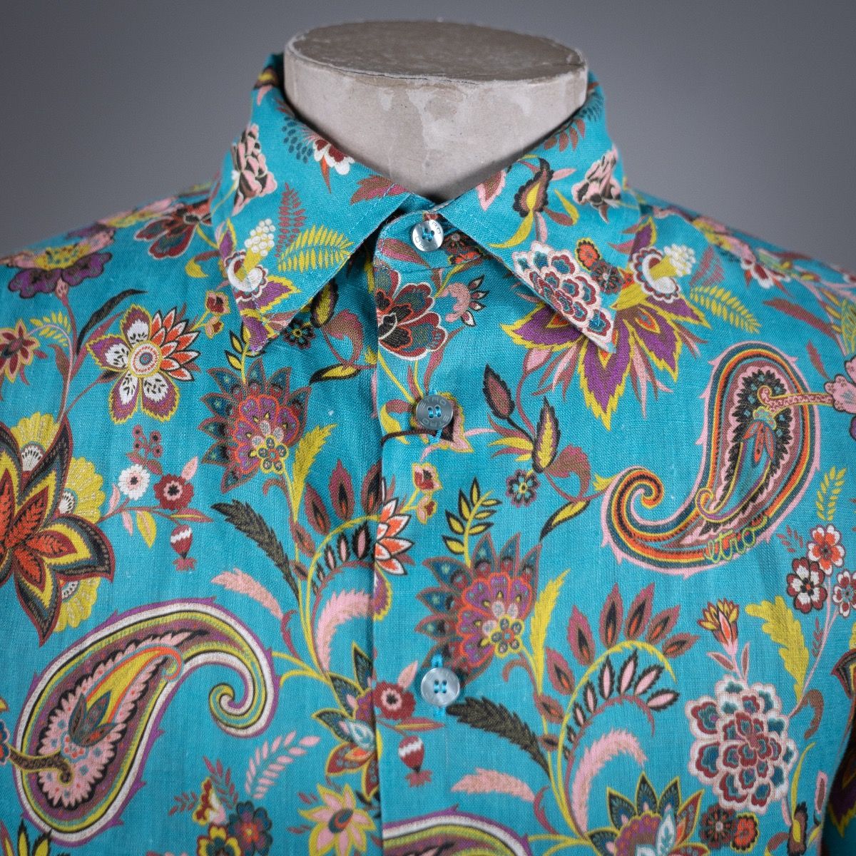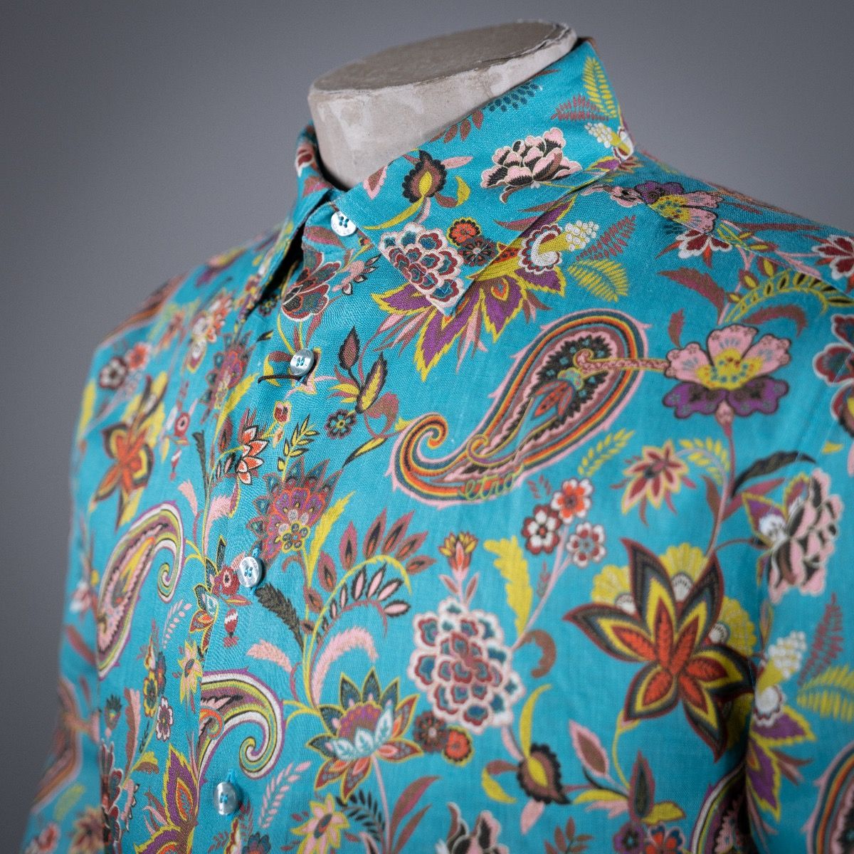 Etro was oorspronkelijk een familiebedrijf in interieurstoffen. Een merk waar uitbundige kleuren en vrolijke ontwerpen samengaan tot een stijlvol geheel. Dit print shirt is heerlijk draagbaar en zomers, gemaakt van een luxe, zachte linnen. De ontwerpen van Etro zijn uniek en tijdloos en zijn zowel meer gekleed als casual te dragen. De pasvorm van de shirts is slank, meestal is het verstandiger om één maat groter te kiezen.