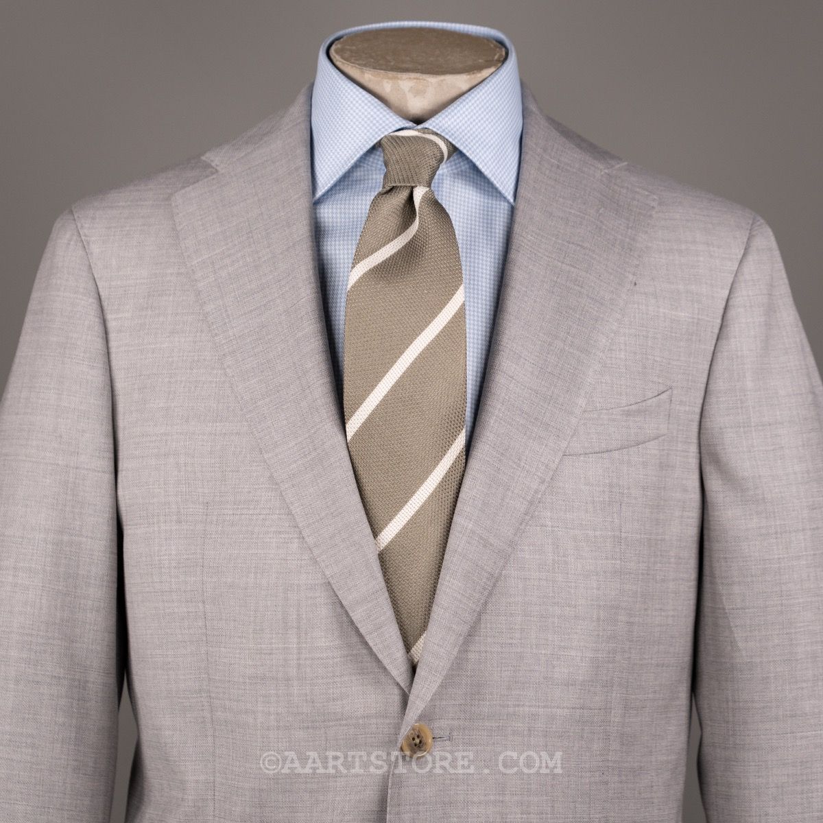 Dit voorjaar brengen we de AART Business lijn terug. Pakken en jasjes met kleermakersdetails en gesneden uit luxe stoffen maar wel voor een realistische prijs. De Preston is ons nieuwe Business pak, gemaakt met een slanke (maar niet slim) pasvorm en een zachte maar correcte schouder. Dit lichtgrijze exemplaar is gemaakt van een stof met een lichte structuur, dat geeft dit pak een iets casual, zomerse uitstraling.