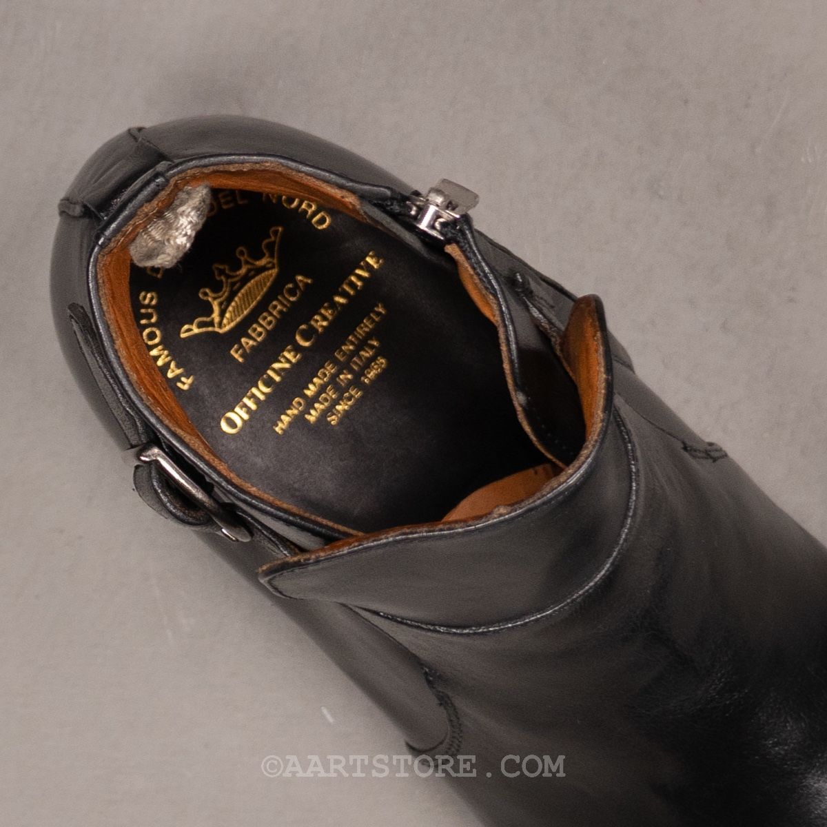 Officine Creative is een Noord-Italiaanse schoenmaker die de dingen op een traditionele manier net anders doet. De schoenen worden met de hand gemaakt op de traditionele (correcte) manier, maar de modellen en de finishing maakt dit juist eigentijds en cool. De Providence is een van de meest sexy laarsjes uit de collectie. Losjes gebaseerd op de tijdloze Jodphur stijl maar dan met een aansluitende vorm en de riem als speels detail. Gemaakt in stevig leer dat op de neus van de schoen extra gepoetst is voor een licht ingeleefd effect. Dit geeft de schoen iets stoers dat perfect past bij zwarte denim, flanel of een strak pak. De constructie is mooi ambachtelijk en traditioneel met een in 2 stappen vastgemaakte leren buitenzool. Deze heeft rubberen inzetstukken die samen met een rubberen hak stevigheid en grip bieden in ieder weertype en in iedere omstandigheid.