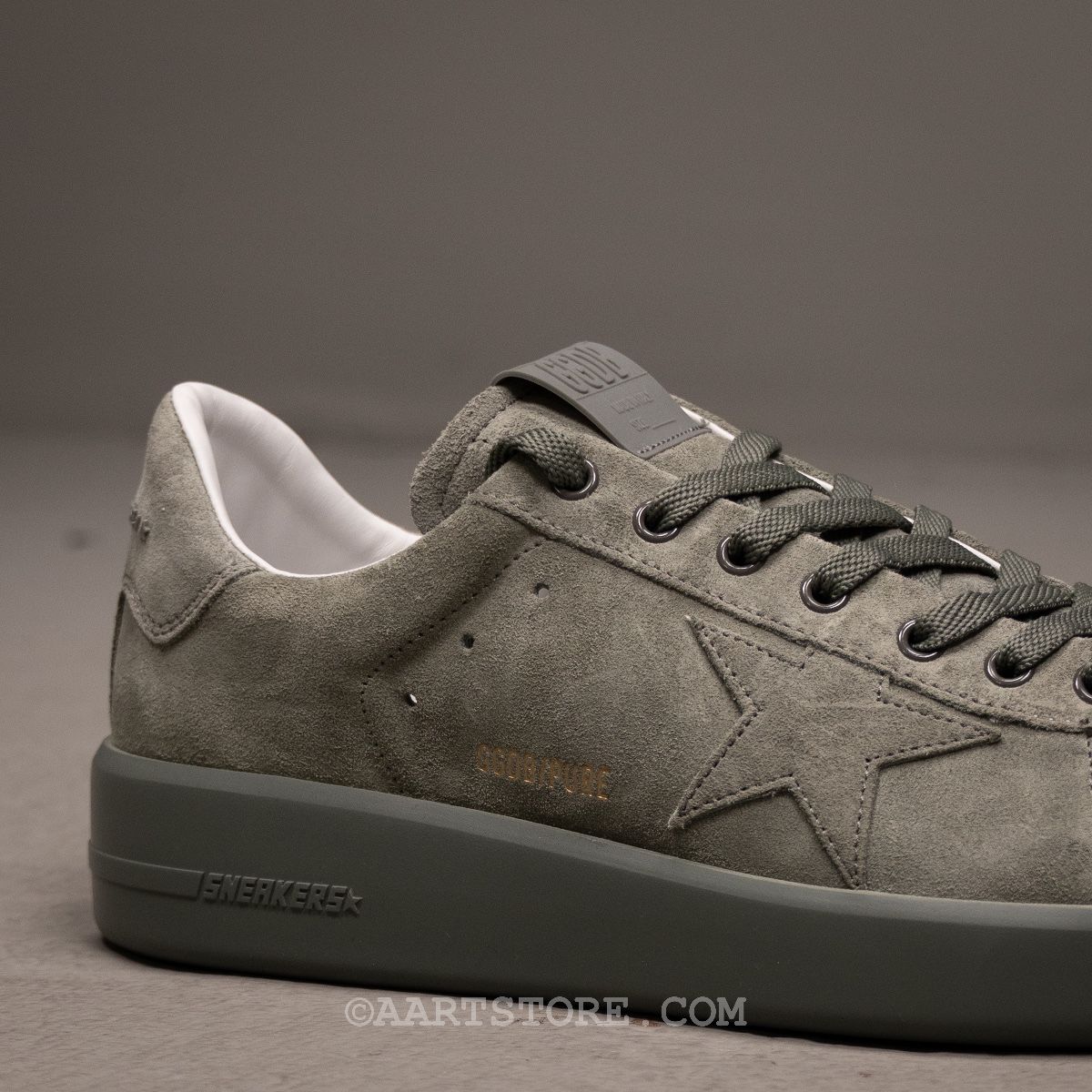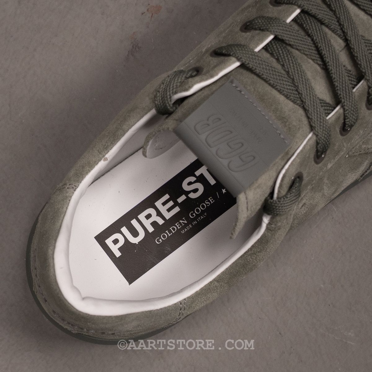 Golden Goose is een van de coolste (insider) merken. Geïnspireerd op de Californische skateboard cultuur van de jaren ’80 heeft het een vintage achtige uitstraling, maar met een modern kleur en materiaalgebruik. De Pure Star is de witte raaf in de collectie; de enige sneaker met een cleane uitstraling. Gemaakt in zacht suède met een iets stevige zool is het een sneaker die elegant en sportief combineert. Mooi bij een jeans, maar hij kan ook bij een jasje en een chino.