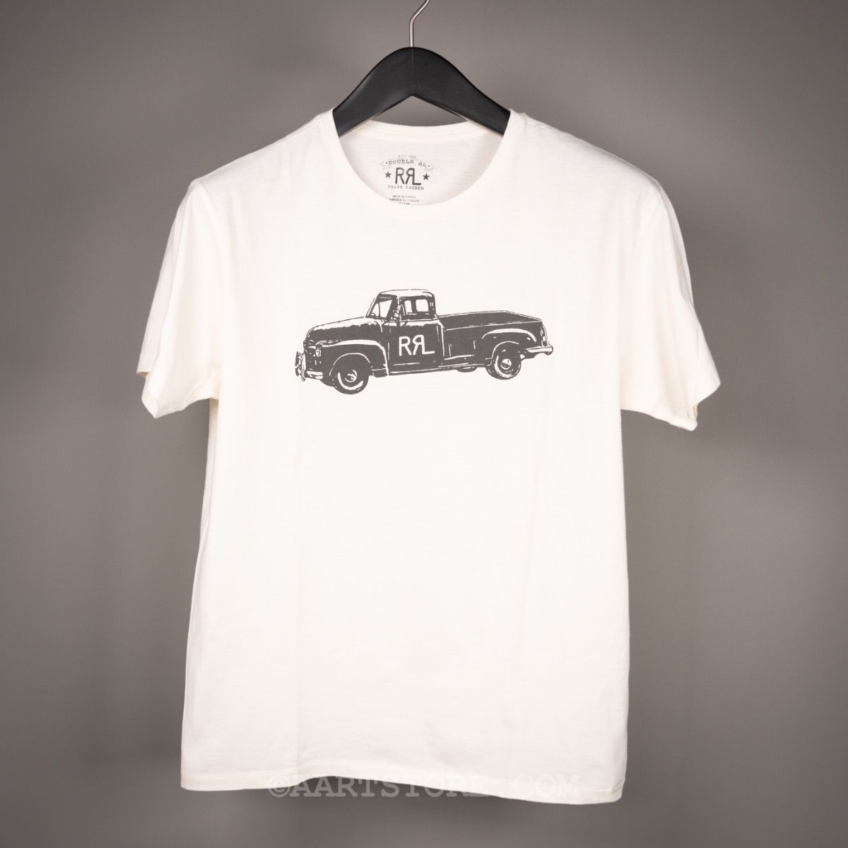 RRL (je zegt Double RL) is een van de meest bijzondere labels in onze collectie. Het hobbyproject van grootmeester Ralph Lauren is vernoemd naar zijn ranch (de Ralph & Ricky Lauren ranch) in Colorado. Het label combineert authentieke Americana met traditionele maakwijzen en doeken. Het wordt in Nederland maar op 3 plekken verkocht en wereldwijd op minder dan 200, echt exclusief. Dit T-shirt is mijn persoonlijke favoriet uit de collectie. De truck op het shirt bestaat daadwerkelijk en deze Chevy (bijnaam Pumpkin) doet tot op de dag van vandaag dienst op de RRL ranch.
