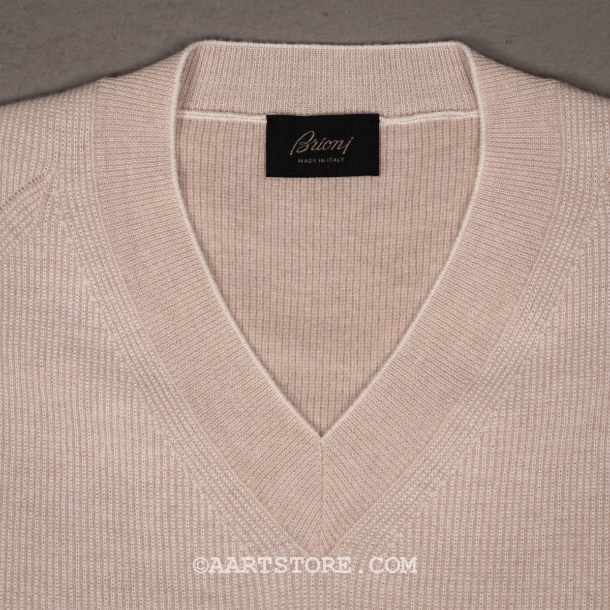 Brioni is een legende die eigenlijk geen introductie nodig heeft… Gesticht in Rome, in 1945 door kleermaker Nazareno Fonticoli en zakenman Gaetano Savini. Sindsdien heeft de kleermakerij de grote der aarde gekleed en wordt het gezien als een baken van kwaliteit, kleermakerskunst en stijl. Deze trui heeft die typisch Romeinse chique. Het is een tijdloze V-hals maar door de fijne Engelse rib, de brede rand langs de kraag en het gebruik van subtiel twee kleurig garen maakt dit een uniek stuk. Gemaakt van een combinatie van getwijnde merino en cashmere is deze trui zacht én stevig. Draag deze trui over een wit shirt voor een beetje stealth wealth.