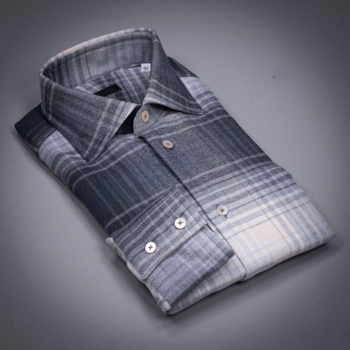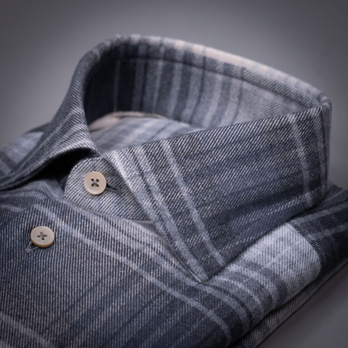 Laboratorio del Carmine is een mooi familiebedrijf uit Bergamo, Noord-Italië. Het mooie is dat de shirts Italiaanse flair combineren met Zwitserse precisie en betrouwbaarheid. Veel handgemaakte details, prachtige doeken en een elegante, slanke pasvorm. Dit exemplaar si gemaakt van een lekker dikke flanel, zacht, warm en luxe. Door de ingetogen kleurstelling is het verre van een houthakkershemd, eerder iets dat je draagt voor gezelligheid, eventueel in de sneeuw.
