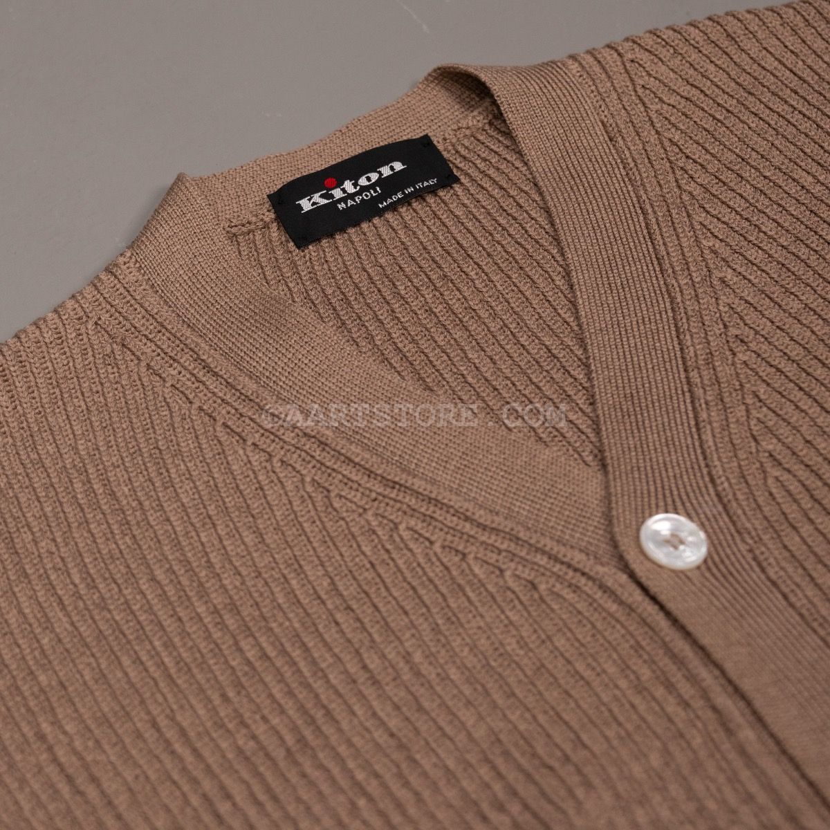 KITON is simpelweg het mooiste (merk) dat je als man kunt dragen. Dit Napolitaanse label heeft als motto: the best of the best +1, en dat is precies wat men doet. Bij ieder stuk is het uitgangspunt om simpelweg de best mogelijke versie te maken, alles met de hand. Het breiwerk wordt in de heuvels rondom Napels gemaakt, van de fijnste garens. Zoals dit vest, een combinatie van pima katoen en zijde. Een stuk dat tijdloos maar ook stoer is en door de parelmoeren knopen perfect past bij broeken met een lichte kleur. De mooiste optie is een (bijna) witte broek en een denim shirt.