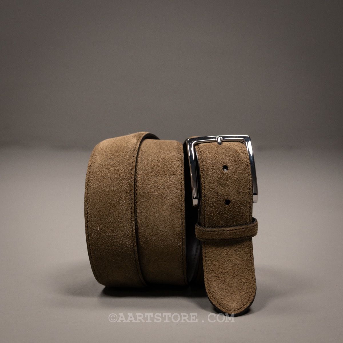 Paolo Vitale is een Italiaanse leerbewerker, gespecialiseerd in exotische leersoorten. Samen met AART maakt hij een collectie riemen die perfect past bij een luxe dressy casual look. Deze suede riem is gemaakt van zacht, soepel leer met een stoere uitstraling. Deze riem heeft een panama constructie, met een iets bol middenstuk en zichtbare stiksels met gevet garen dat perfect past bij een chino of jeans.