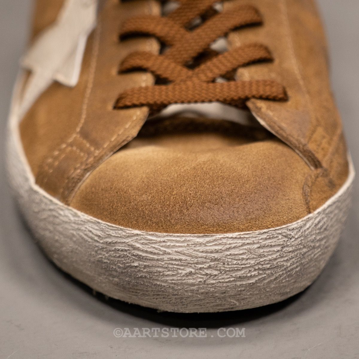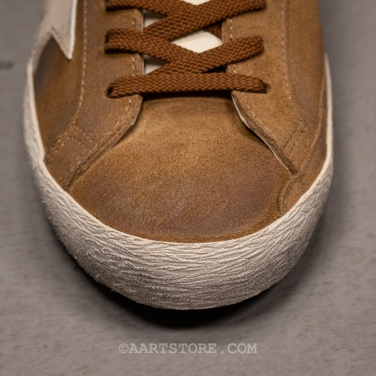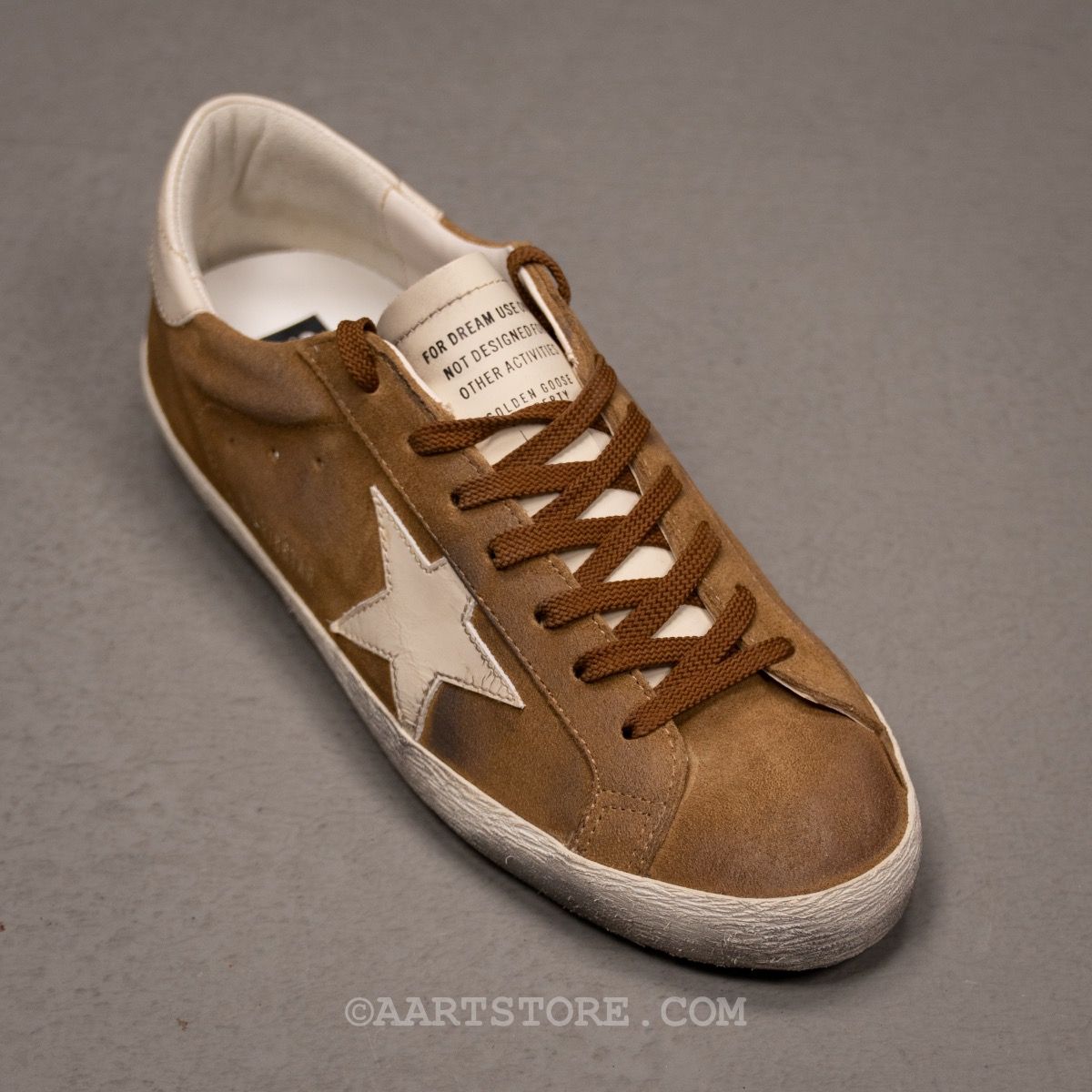 Golden Goose is een van de coolste (insider) merken. Geïnspireerd op de Californische skateboard cultuur van de jaren ’80 heeft het een vintage achtige uitstraling, maar met een modern kleur en materiaalgebruik. De Super Star is de originele Golden Goose sneaker, een tijdloos model. Gemaakt met een dunne zool maar wel ondersteunend voetbed waardoor ze lekker lopen. De used look past perfect bij een meer casual stijl van afgewassen jeans en een eenvoudig t-shirt. Understated cool, precies zoals je wilt. Deze camel kleur is niet alleen mooi bij donkere denim, maar zeker zo mooi bij een lichte cord.