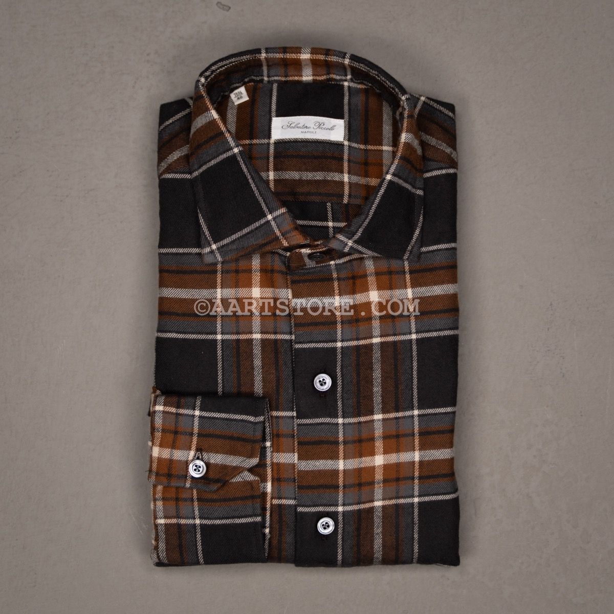 Salvatore Piccolo is een Napolitaanse shirtkunstenaar. Hij maakt een uniek en bijzonder rijk shirt dat zich onderscheidt van de massa. Het zijn handgemaakte hemden gesneden uit niet alledaagse stoffen die vaak speciaal voor Salvatore in Japan geweven worden. Dit shirt zit vol met details, maar mijn favoriet is wel de extra coupnaad in de mouw waardoor deze de natuurlijke kromming van de mouw beter volgt. Dit shirt is gesneden uit een handgewoven Japanse flanel, een doek dat met jaren alleen maar mooier en mooier zal worden.