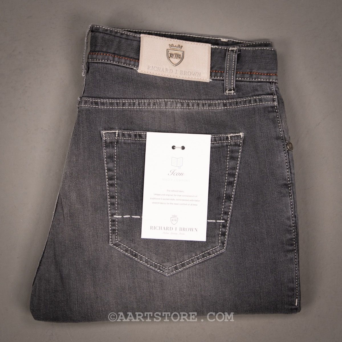 Richard J. Brown is ons favoriete jeanslabel. De toewijding aan kwaliteit en detail maakt het simpelweg de mooiste broek op de markt. Luxe denim, in de zachtste doeken en een pasvorm die de rest overstijgt. Tokyo is de populairste pasvorm van Richard J. Een slim fit jeans die niet skinny maar wel elegant is. De Pietra is gesneden uit een rijke denim kwaliteit met stretch, waardoor de broek zeker niet voelt als een gewone jeans. De donkerdere grijze kleur maakt dit een jeans die perfect zakelijk gedragen kan worden, met of zonder jasje.