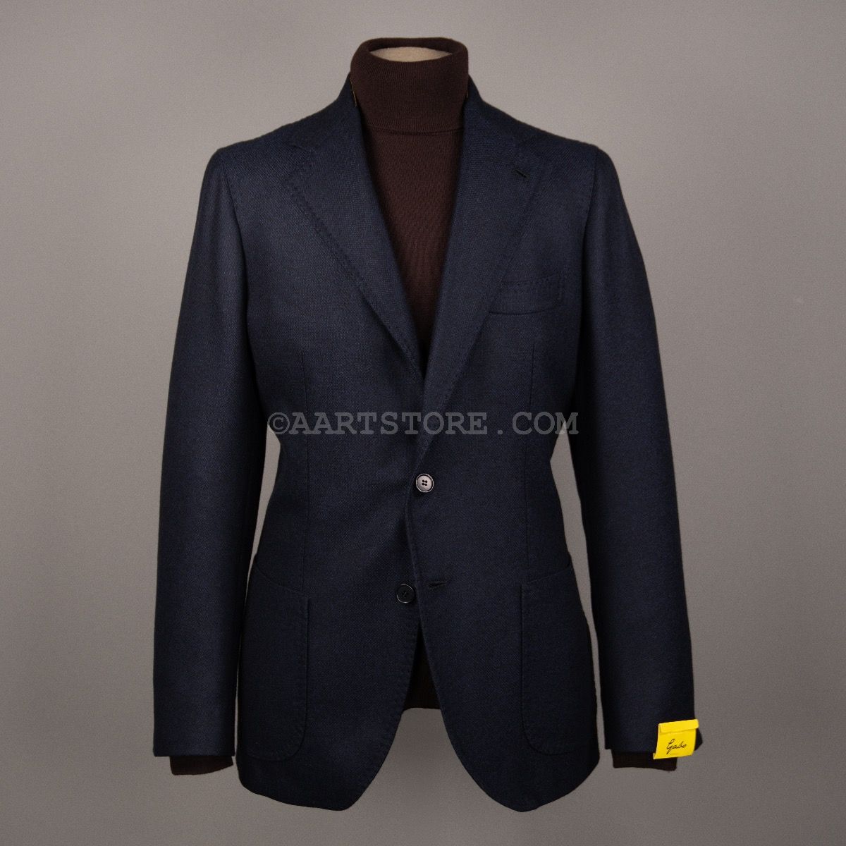 Gabo is een Napolitaanse kleermakerij die traditie combineert met een bijna uitgestorven smaak in stoffen en materialen. Het zijn handgemaakte jasjes die een elegante en comfortabele pasvorm combineren met een sexy silhouet. Dit jasje is gesneden uit een iets grovere stof met een duidelijke hopsacstructuur. Dit geeft het jasje iets sportiefs zonder aan elegantie te verliezen. Het is heel combineerbaar (zoals dat een blauw jasje betaamt), kan bij ongeveer alles gedragen worden, maar meer dan een donkere denim en een cashmere coltrui heeft het niet nodig.
