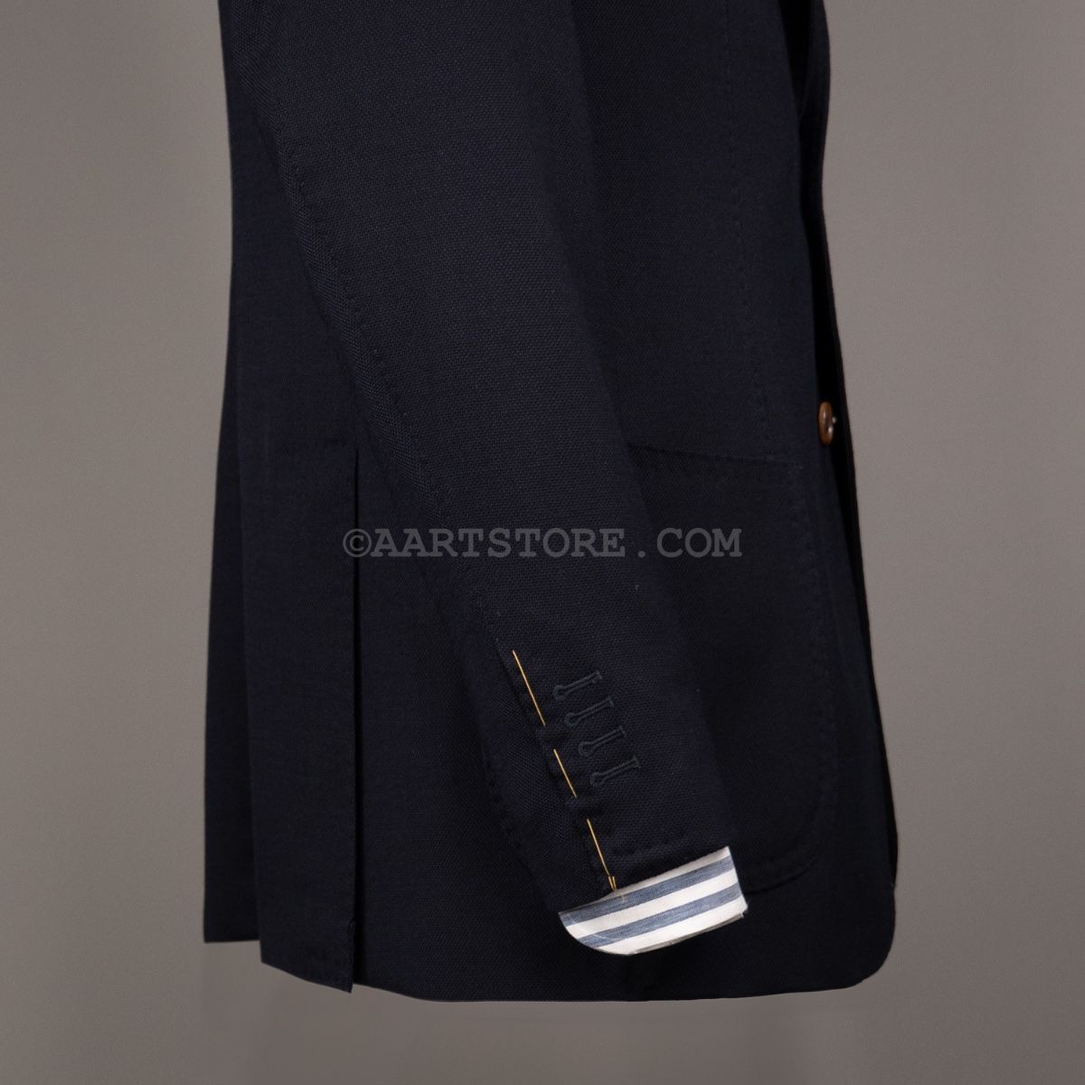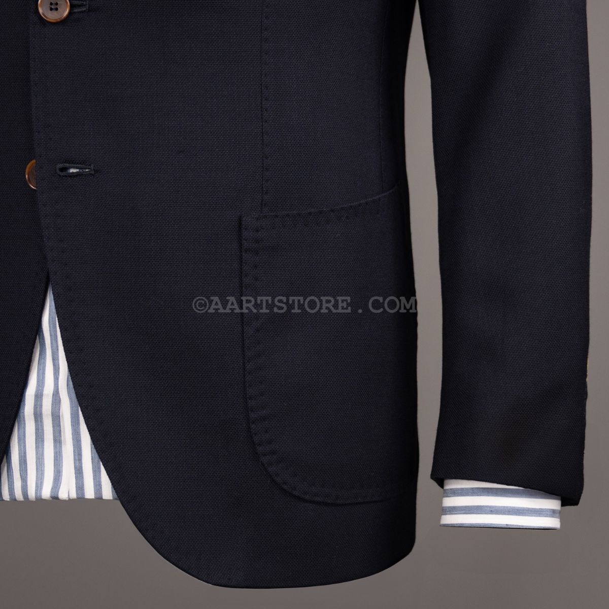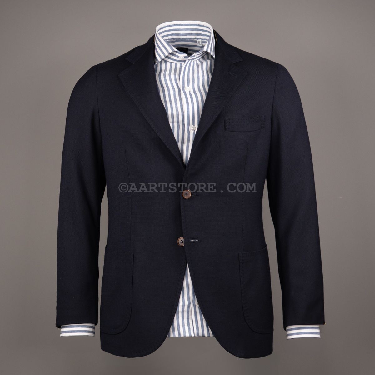 Gabo is een Napolitaanse kleermakerij die traditie combineert met een bijna uitgestorven smaak in stoffen en materialen. Het zijn handgemaakte jasjes die een elegante en comfortabele pasvorm combineren met een sexy silhouet. De Uncinetto is een jasje dat gemaakt van een bijzonder materiaal. Voor deze stof wordt gebruik gemaakt van hoog opgedraaide wollen garens die met een haak techniek tot een open, kreukarme stof worden verwerkt. Dit is een luchtig jasje dat toch tegen een stootje kan. Mooi te dragen bij een wollen Pescarolo broek of een Cohën chino.