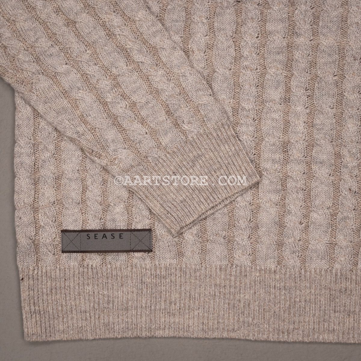 Sease is een nieuw merk maar wel met een rijke heritage. Dit merk is het geesteskind van de familie Loro Piana, dat zij begonnen zijn na de verkoop van hun gelijknamige bedrijf. De naam is een samentrekking van ‘ease’ en ‘sea’; naar de combinatie van het relaxte gevoel en het gebruik van hoogwaardige materialen uit de zeilsport. Sease brengt technische hoogwaardigheid samen met absolute luxe. Deze kabeltrui is gemaakt van een combinatie van cashmere en linnen; een perfect recept voor een zomertrui. Het vanise effect, waarbij er twee verschillende kleuren draad gebruikt worden voor een subtiel kleureffect, geeft de trui een unieke en sportieve uitstraling.