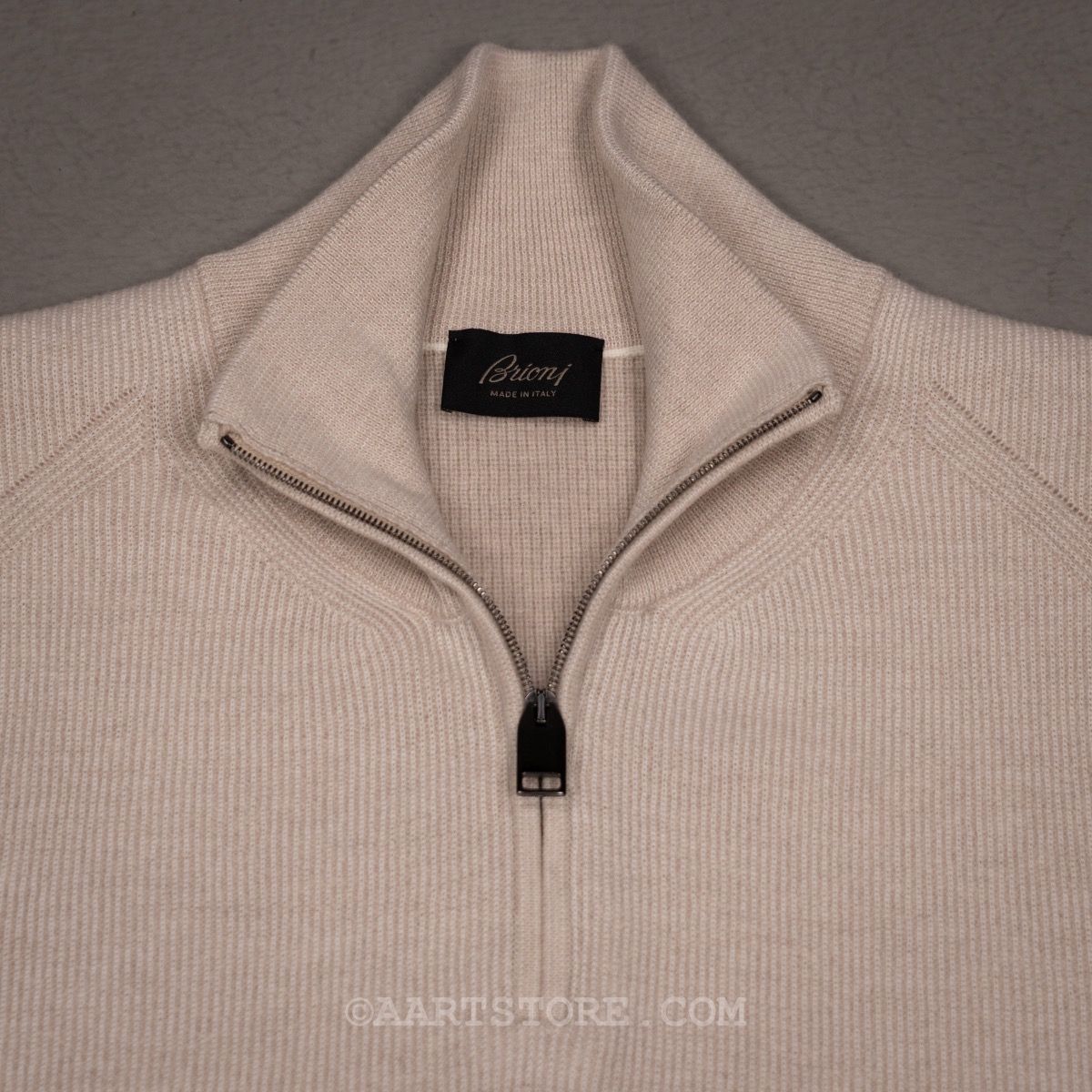 Brioni is een legende die eigenlijk geen introductie nodig heeft… Gesticht in Rome, in 1945 door kleermaker Nazareno Fonticoli en zakenman Gaetano Savini, heeft de kleermakerij sindsdien de grote der aarde gekleed en wordt het gezien als een baken van kwaliteit, kleermakerskunst en stijl. Deze Vanise Zip is een uitermate chique pullover. Gemaakt van twee verschillende kleuren draad in 100% cashmere. Dit is pure luxe om te dragen met een eigentijdse en elegante uitstraling. Draag de trui gesloten over een T-shirt of met de rits verder naar beneden bij een shirt en iets wijdere chino.