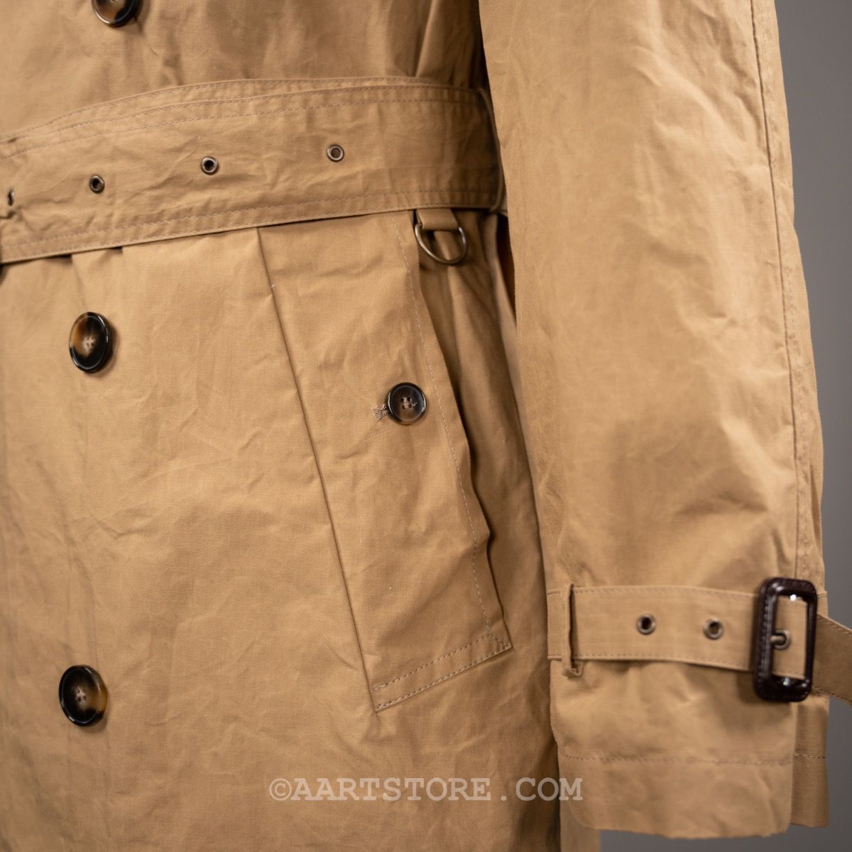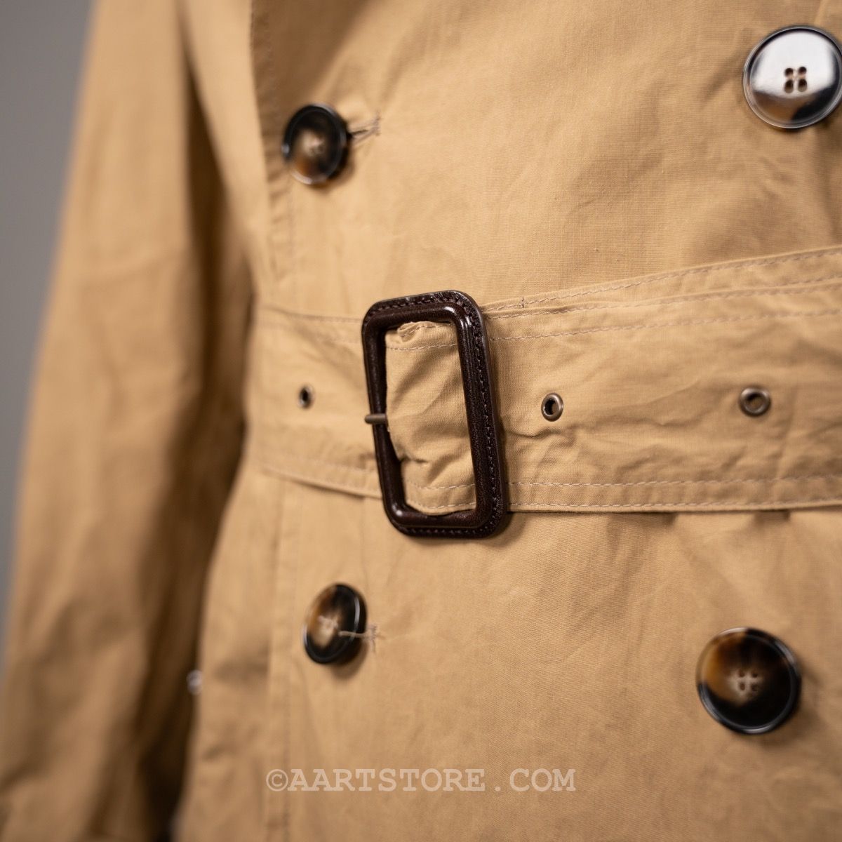 L’impermeabile is een van onze nieuwste merken maar tegelijkertijd is het ook een van de oudste merken in ons arsenaal. Het stamt uit de jaren na de eerste wereldoorlog als Italiaans antwoord op de toen mateloos populaire regenjassen van Britse merken als Aquascutum en Burberry. Daarna is het merk wat in vergetelheid geraakt totdat de huidige eigenaar het ‘vond’ in de nalatenschap van zijn vader… Deze Vasco trench is een zomerse en eigentijdse versie van de klassieke trenchcoat. Door het gebruik van een licht gewaxt (het is niet vet) materiaal en de ongevoerde constructie is dit een zwierige en licht casual zomerjas.